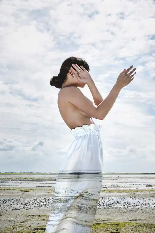 Fashion designer Elsien Gringhuis’ designs of her latest capsule collection are an abstraction of the landscapes of the Dutch Island Schiermonnikoog.