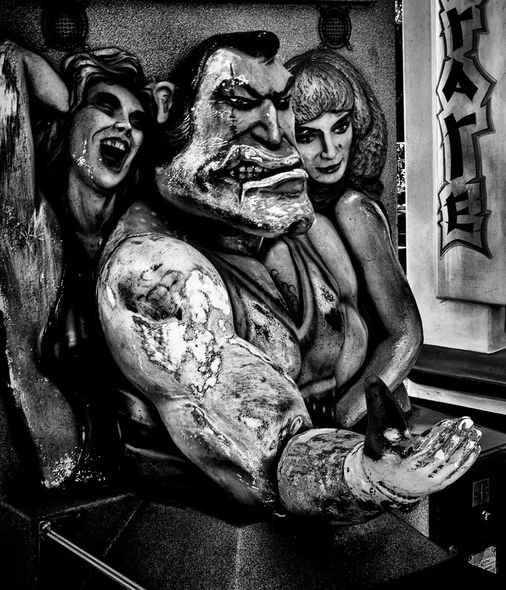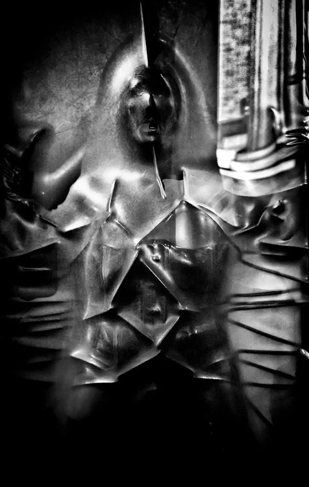 The rough, black and white granulation of MagLau’s pictures unveils all these emotions. MagLau is playing with them while not judging what he is showing. In one iconic picture, a cage decorated by the word “Slave” appears to us. There is nobody in this cage. Nobody is captive of one single interpretation although some fetishists may be trapped in their fantasy world.