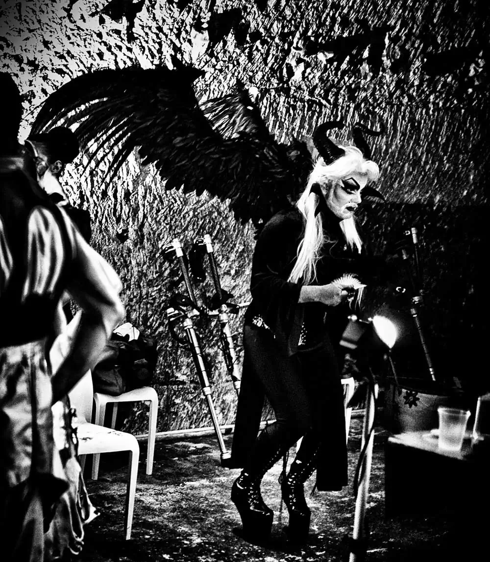 As Robert Mapplethorpe wrote: «Beauty and the devil are the same thing». Stunning pony girls, amazing drag queens, frightening gothics, beautiful cyborg creatures and mutants walk in a scenery made of ruins. It is a world that they try to re-invent. Some are here for the fun, some are here to suffer, some are just playing and some are living their true life, some are looking for sources of new pleasures and some are in search of a new god or goddess.