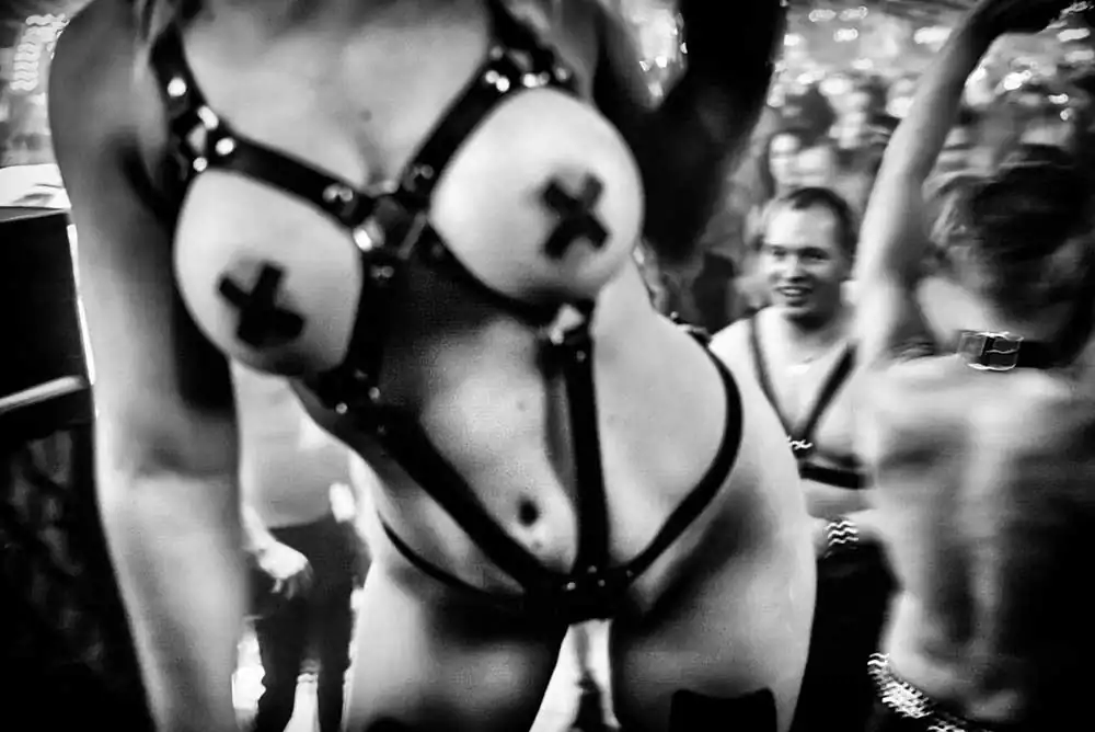 The pictures reveal real fetish scenes and not posed or organised scenery. The shoots were taken at low light, without flash in a street photography approach. MagLau has privileged the mood to the sharpness, the blurred impression to the clean pictures in order to get the smell of this underground world made of latex, tattoos and ropes.