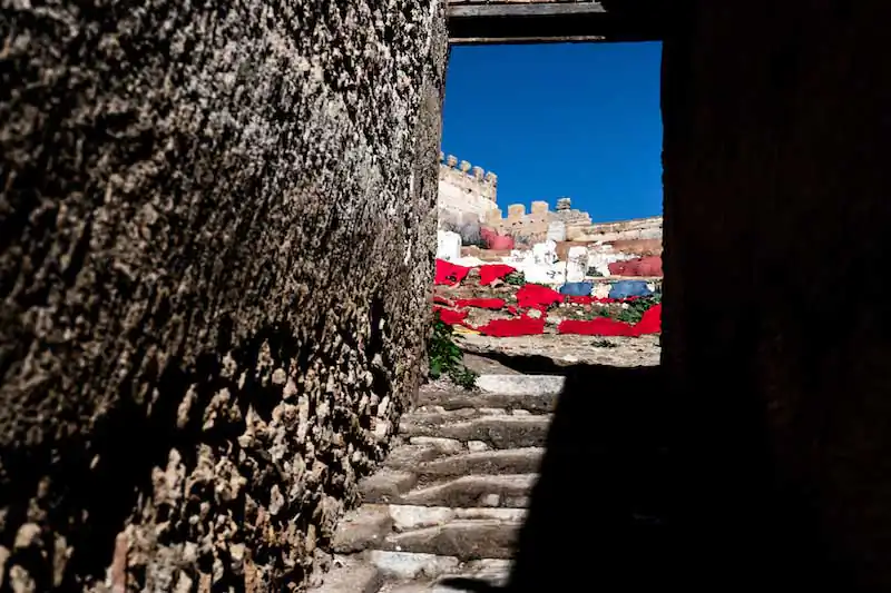 It was the first time for me that I visited Fez. The shape of the city, the narrow and dark alleys, which contrast with the noise and the crowd of bazaars, gave me the impression of Fez as a city dressed in an aura of mystery. So, in my own way, turning and discovering the city, I tried to undress this mystery, comparing it with the treatment of animal skins, of which they are undressed. For this reason: Fez Undressed.