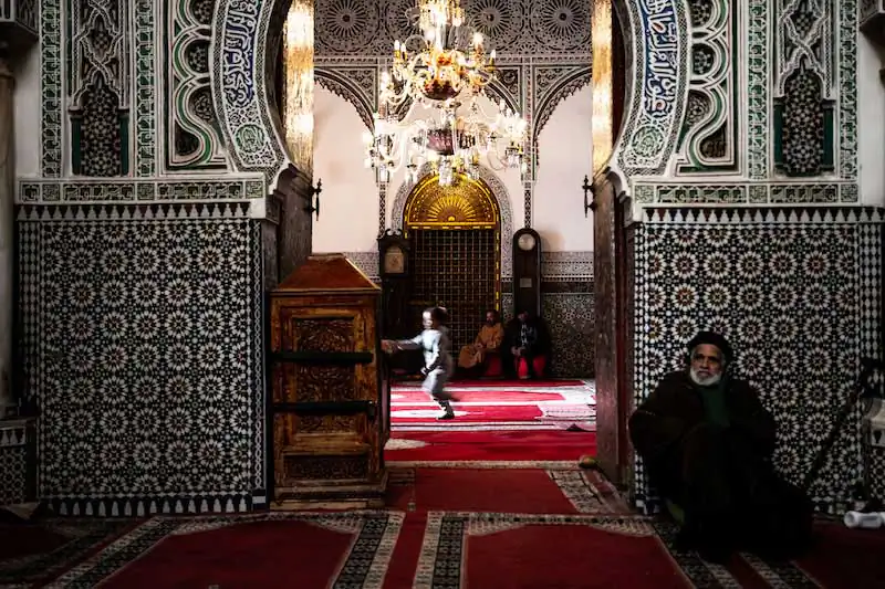 Located in a mountainous region, the old town is characterized by the intricate streets, travelled only by people and donkeys, the only way of transport allowed and used by the locals. Tourists and locals mix confusedly in the chaotic days of Fes. In the heart of the Medina, in the center of the old city, stands the ancient mosque of Karaouine, which opens onto the immense bazaar that surrounds it.