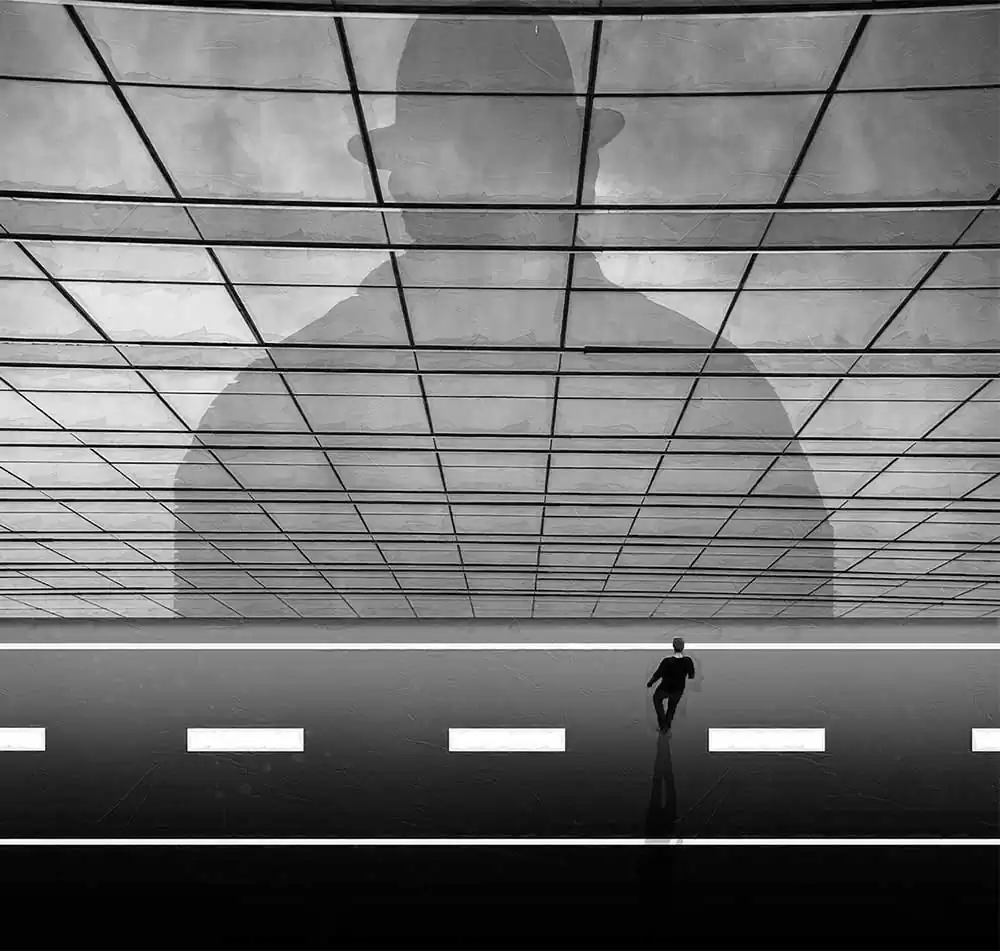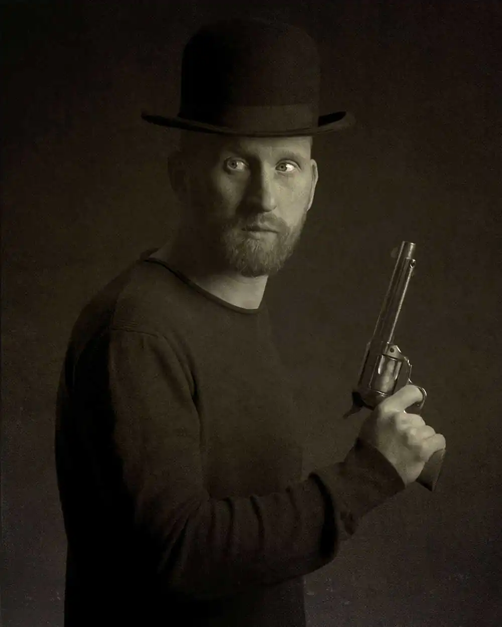 Monochromatic tones and shadows are prevalent – particularly within the protagonists themselves. A modern contemporary take on the traditional Noiristic elements of mystery, Femme Fatales, inescapable darkness, menace & murderous plotlines. These elements of the cinema of Film Noir make up an integral part of Jacks work, creating mystery and Ambiguous criminological plotlines/storytelling helping to fuel the viewer’s imagination here, representing the shadowy darkness within these noir fuelled portrait, landscape & street manipulations – a range of photographic styles all embedded with his signature “Noir” aesthetics. Jack wants his audience to piece together and dissect this cinema within his unconscious mind. Savage’s influences are markedly more cinematic than photographic. The directorial ghosts of Preminger, Hitchcock, Welles, Wilder, and Ford are often winked at and embellished upon within this series. He endeavours to create these manipulations with a distinctive traditionalist feel, harking back to this golden age of cinema within contemporary photographic fine art. [Official Website]