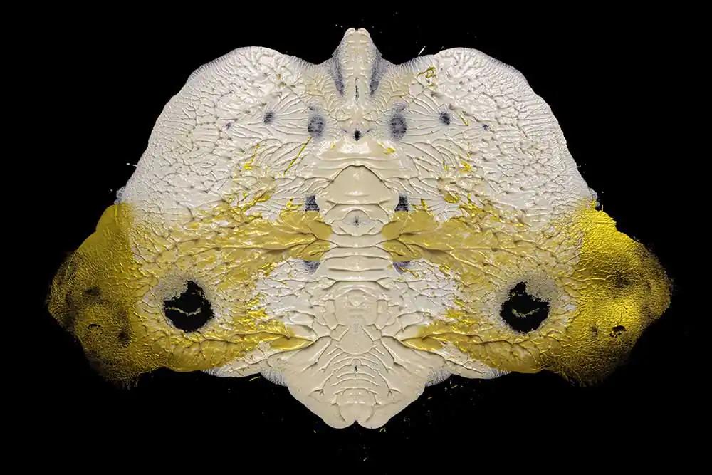 I am a klecksography artist who enhances the aesthetic power of his own original paintings through the mean of photography. The union between these two different media creates an outcome that highlights certain features that otherwise they would be hidden, making the photography of the artwork the final piece that stands on its own. My aim is to broaden the people’s points of view, making them embrace multiple perspectives at the same in time in order to establish a temporary emphatic connection among them for feeling more close as human beings in a deep level. Given all the psychological and social dynamics involved in the viewing of my work, the artworks gain the attention of such professionals who work with the human mind and subconscious, such as psychotherapists and criminologists, as well as art collectors. [Official Website]