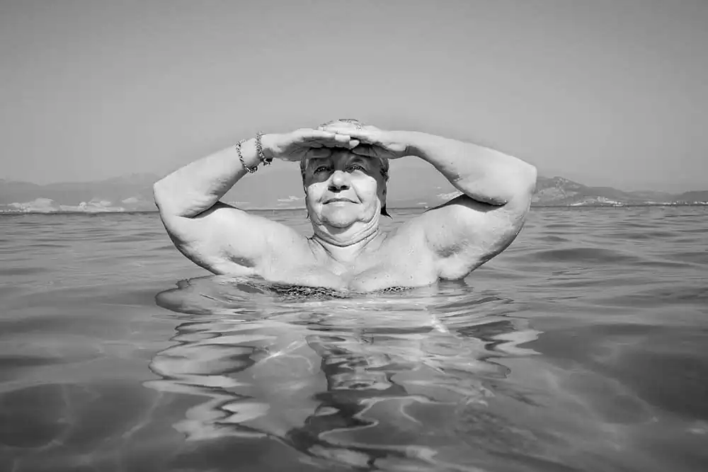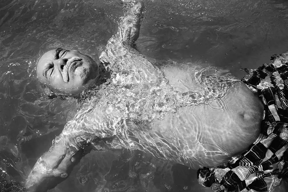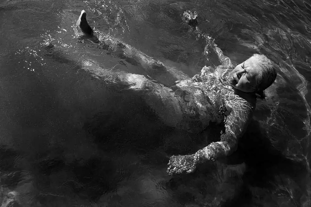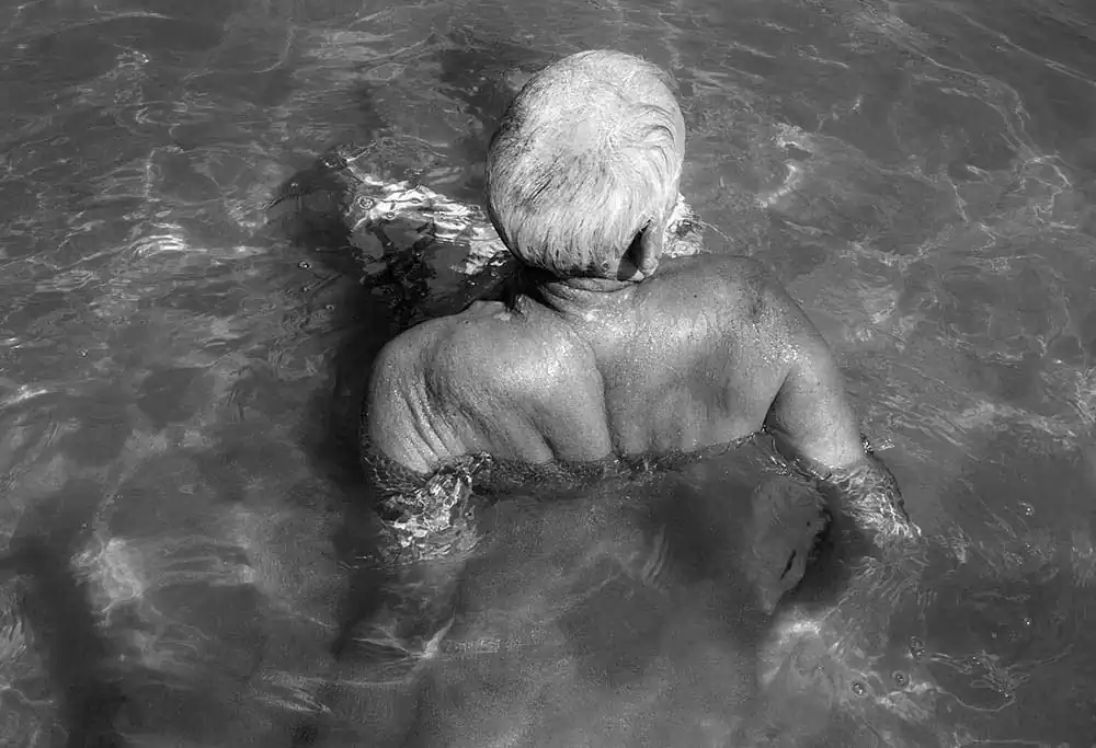 In “Floating” the people I have photographed have generously displayed their bodies as if they were freed from the age and beauty-complexes which permeate our society.