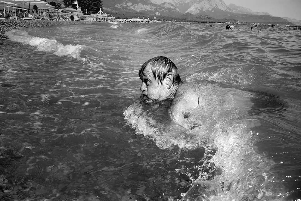 Since then I have been fascinated by the element of spontaneity and unpredictability that water-photography creates. This is ultimately what led me to create “Floating”, where I have photographed individuals at different vacation resorts around the Mediterranean.
