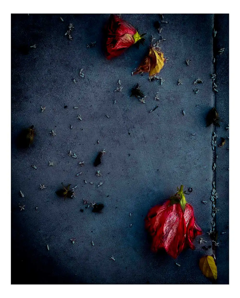 By embracing what is often considered the end, Flora Vida invites viewers to reflect on the impermanence of beauty and the significance of life’s transitions. In this body of work, flowers become metaphors for the human condition—each petal, a fragment of memory; each wilted stem, a reminder of the passing of time. The slow process of withering, often hidden from sight, is brought to the forefront, inviting a closer examination of both the physical and emotional aspects of decline. Through intimate portraits of flowers at various stages of decay, Flora Vida draws attention to the elegance that can be found in abandonment and invites viewers to pause and contemplate the cycles of renewal inherent in nature. At its core, this series reflects my fascination with life’s ephemeral moments. Growing up surrounded by nature, I developed a deep connection to the natural world and an appreciation for its cycles.
