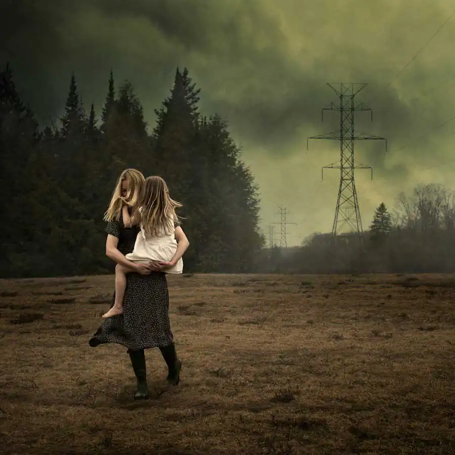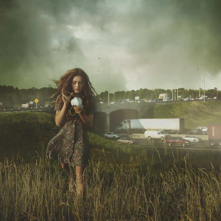 This award winning environmental series focuses on major ecological issues that we face as a society. It is meant to pose the question “How big is your carbon footprint?” by taking on subjects like air and water pollution, vanishing honeybees and deforestation. The first in the series “Leaving the Grid Behind” was what gave the series its title by focusing on one’s own carbon footprint. Need vs. want. Throughout the series the viewer will find a recurring theme of dramatic skies and green/yellowish toxic hues to create the feeling of an ailing world. The only time you don’t see the ominous tones is in a photo called “Rising Up An Earthen Beauty.” It technically isn’t part of the series but I often find myself including it because this is the photo that made me believe I could portray environmental concerns in a conceptual way. It was a commissioned piece and the more I looked at it I found myself imagining Mother Earth rising up out of a decaying earth.