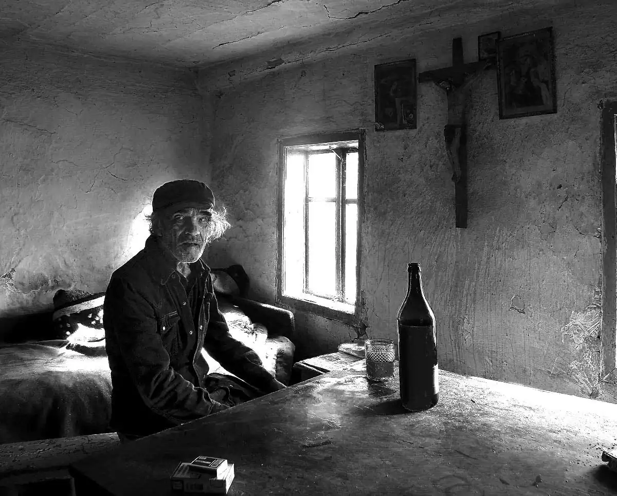 It is a sad story. I learned that he had eleven children, but nobody would take care of him. His wife died long ago. He had little money and would spend all on cigarettes and wine. Yet living alone like this in the country made him happy. He had some land and sheep. I was visiting him frequently and we become friends.