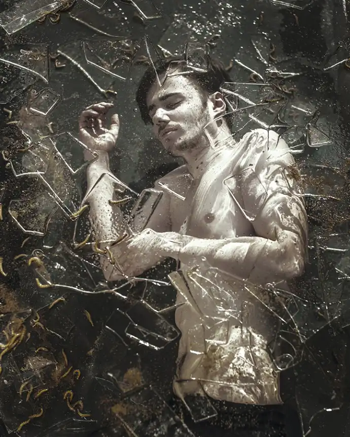 The Forgotten series was established this year. Presents people who became forgotten under the layers. Each photo represents other place and layer. An effect that was created for this photo shoot is not photoshop, but honest and true preparation before a photo shoot. Maria says, this photo shooting was very difficult for preparation, many assistants and the models. One model get ill after. The author tried to reach out feelings of nostalgia, melancholy and loneliness, because human stayed alone with himself on the end. Maria loves the feeling of nostalgia and still do not know why exactly.