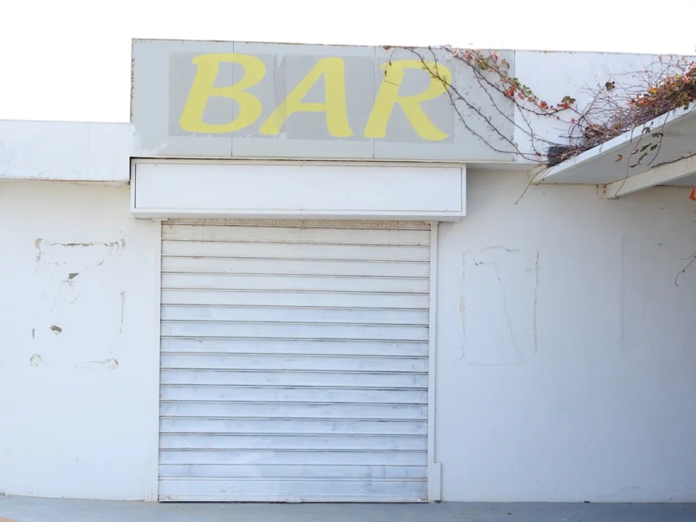 The sequence opens with the closed shutter of a bar: frontal, essential, immediate. Here, something is expected to happen, yet nothing occurs. This threshold introduces the central theme of the project: suspended function and ordinary time standing still.