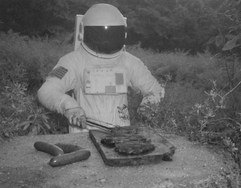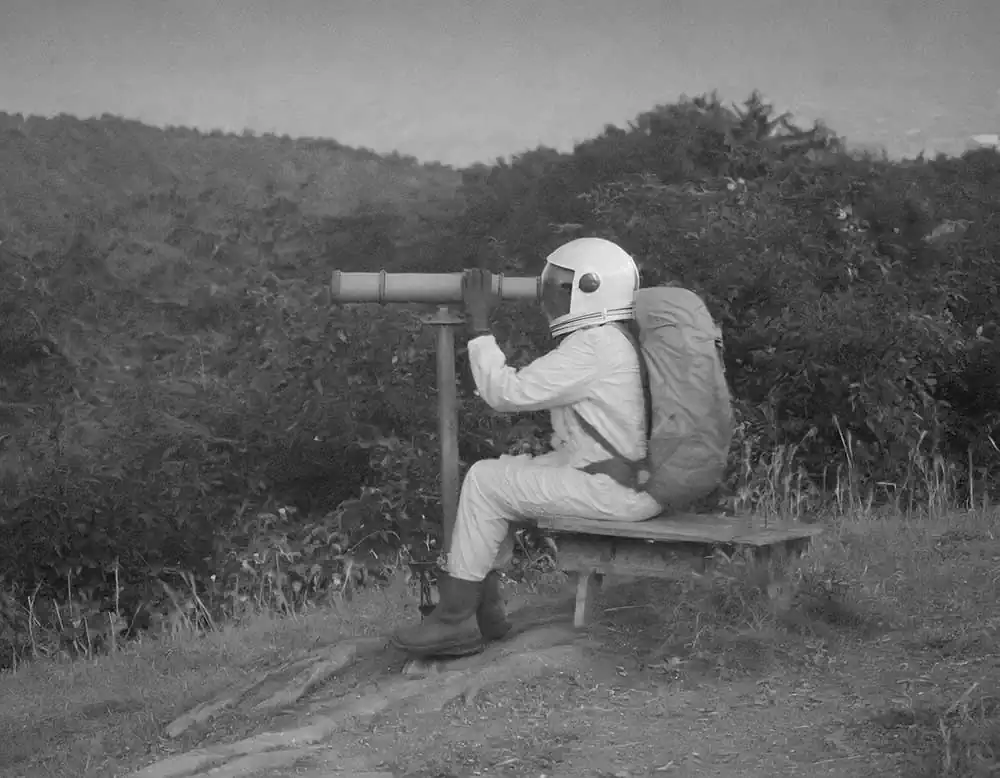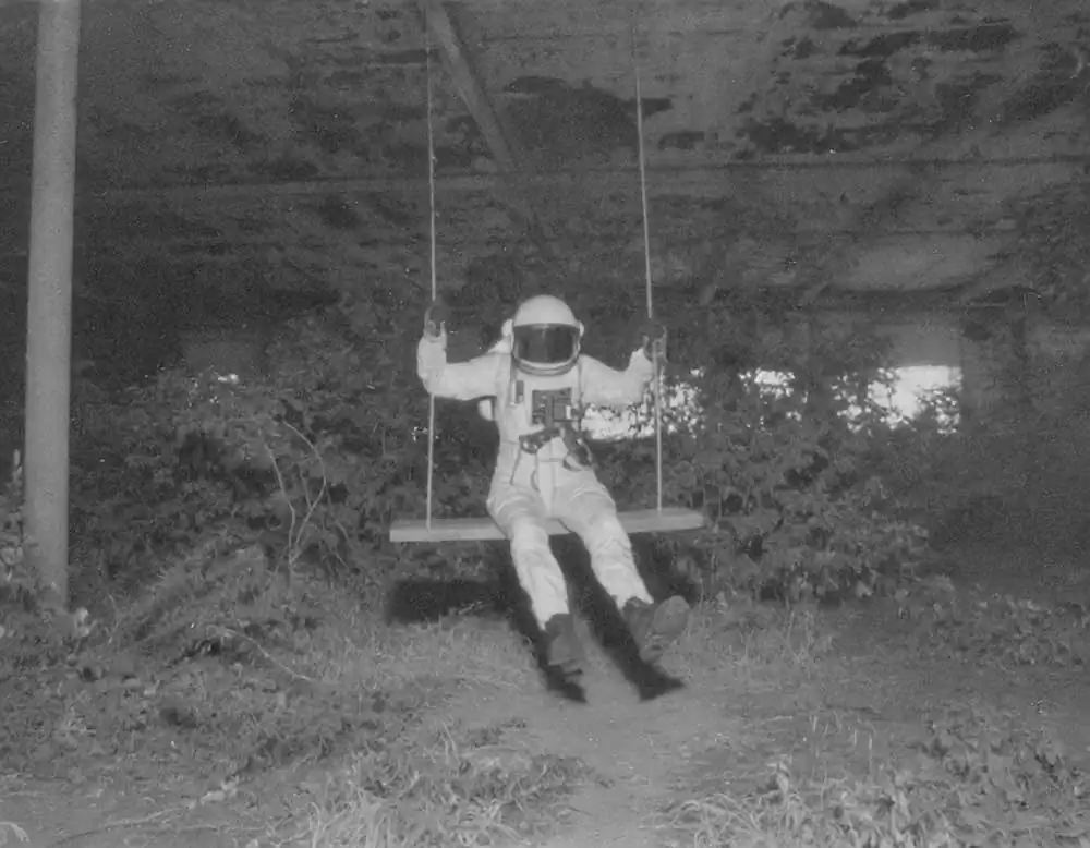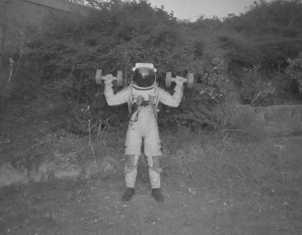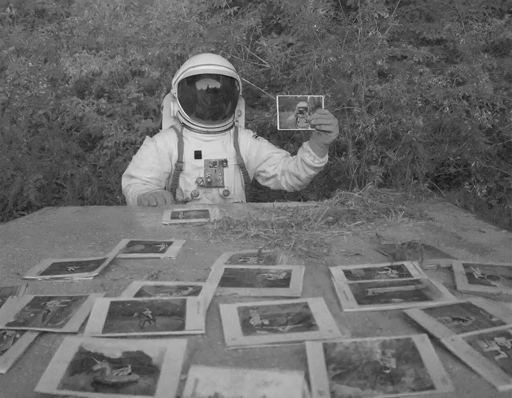 From this personal thought came the idea and title of his project: The Stressonauts are a group of intergalactic explorers who, tired of the hustle and bustle of interstellar traffic, feel the need to take a long break to break from their daily routine and detoxify from accumulated stress. They therefore decide to set course for a quiet provincial planet that has been uninhabited for a long time now: in fact, all its inhabitants have moved to productive galaxies located light-years to the north. Once they arrive on the planet, the Stressonauts, in order to regain peace and contact with nature, impose a few but strict rules on themselves: for the two months of their stay they will try to spend as much time as possible in solitude performing the simple activities that the wild planet can offer them, they must not use technological tools in any way, and they can neither connect nor communicate with their working galaxy. As soon as they arrive on the planet, however, they find a film camera and two old black-and-white rolls of film still intact. Without too much effort, they determine to take one picture a day for sixty days. Don’t ask him how he managed to retrieve these photos but, without too much effort, he decided to show them to you, to try to tell their short story.