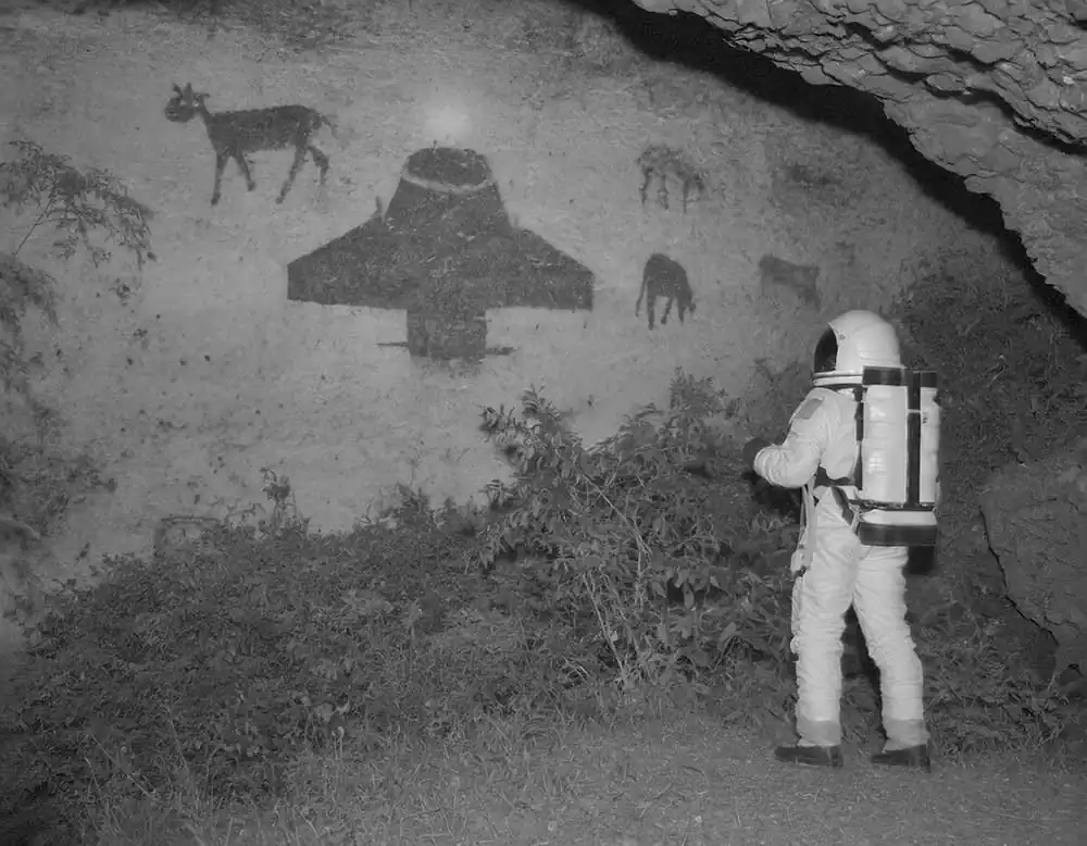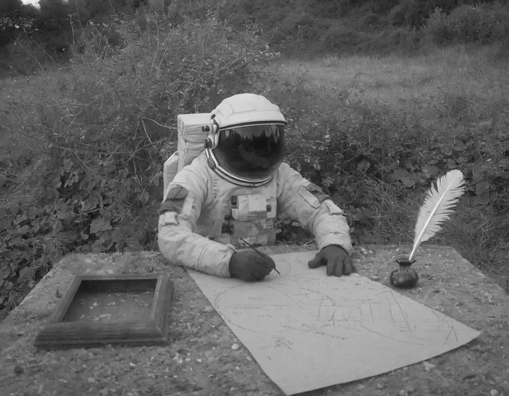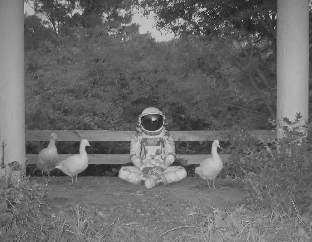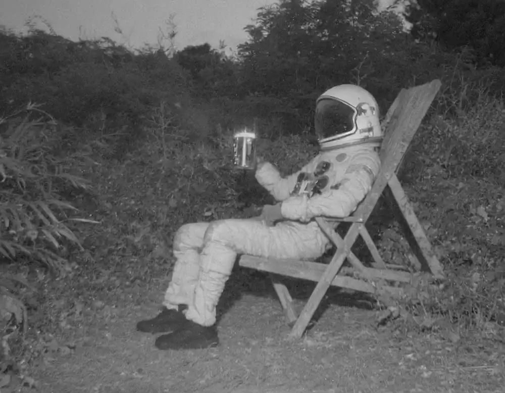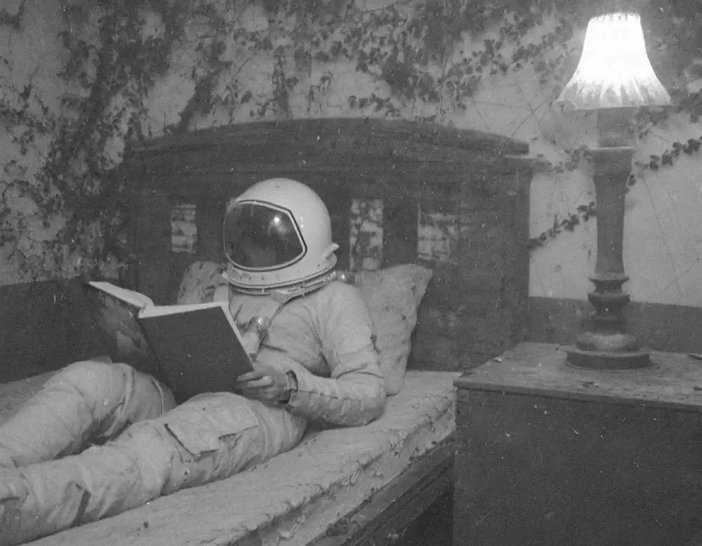 From this personal thought came the idea and title of his project: The Stressonauts are a group of intergalactic explorers who, tired of the hustle and bustle of interstellar traffic, feel the need to take a long break to break from their daily routine and detoxify from accumulated stress. They therefore decide to set course for a quiet provincial planet that has been uninhabited for a long time now: in fact, all its inhabitants have moved to productive galaxies located light-years to the north. Once they arrive on the planet, the Stressonauts, in order to regain peace and contact with nature, impose a few but strict rules on themselves: for the two months of their stay they will try to spend as much time as possible in solitude performing the simple activities that the wild planet can offer them, they must not use technological tools in any way, and they can neither connect nor communicate with their working galaxy. As soon as they arrive on the planet, however, they find a film camera and two old black-and-white rolls of film still intact. Without too much effort, they determine to take one picture a day for sixty days. Don’t ask him how he managed to retrieve these photos but, without too much effort, he decided to show them to you, to try to tell their short story.