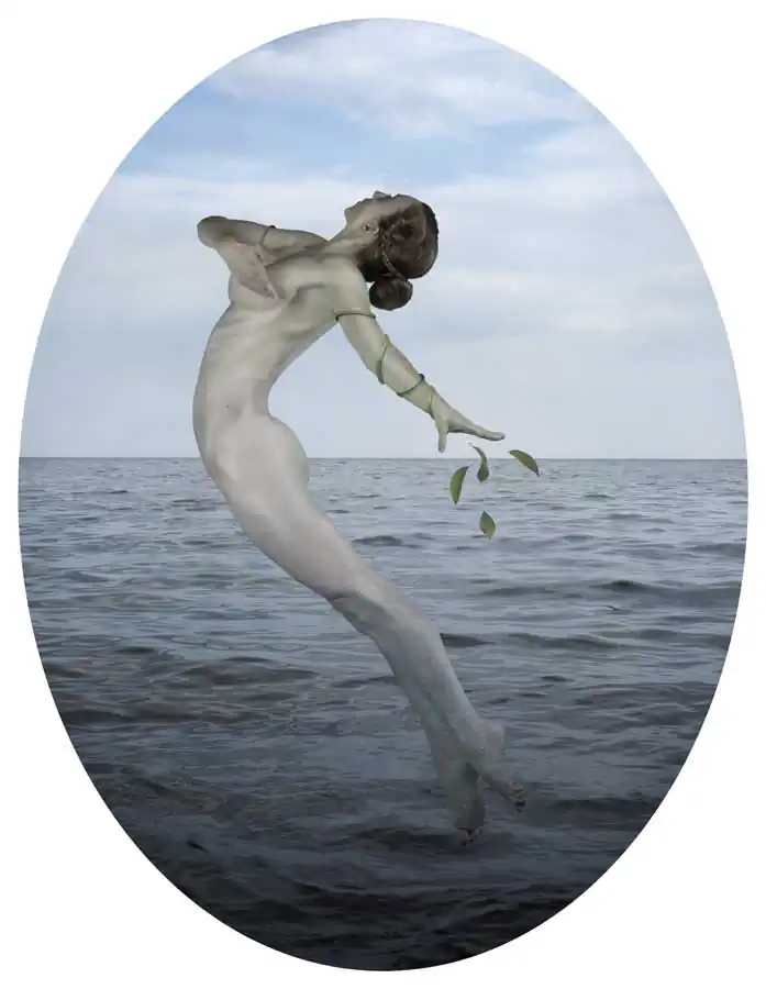 These images take the goddess back to her origins and portray her as powerful, mysterious and ethereal. To depict her character, the goddess is metaphorically and literally blending with nature: branches as arms are an example of this. To represent her strength, a dancer was chosen to model, as dancers are physically strong. Exaggerating this, the muscles were accentuated through photo-manipulation.