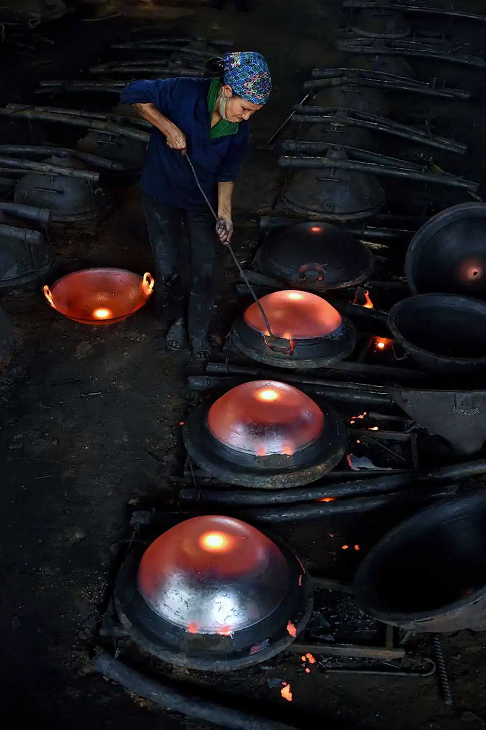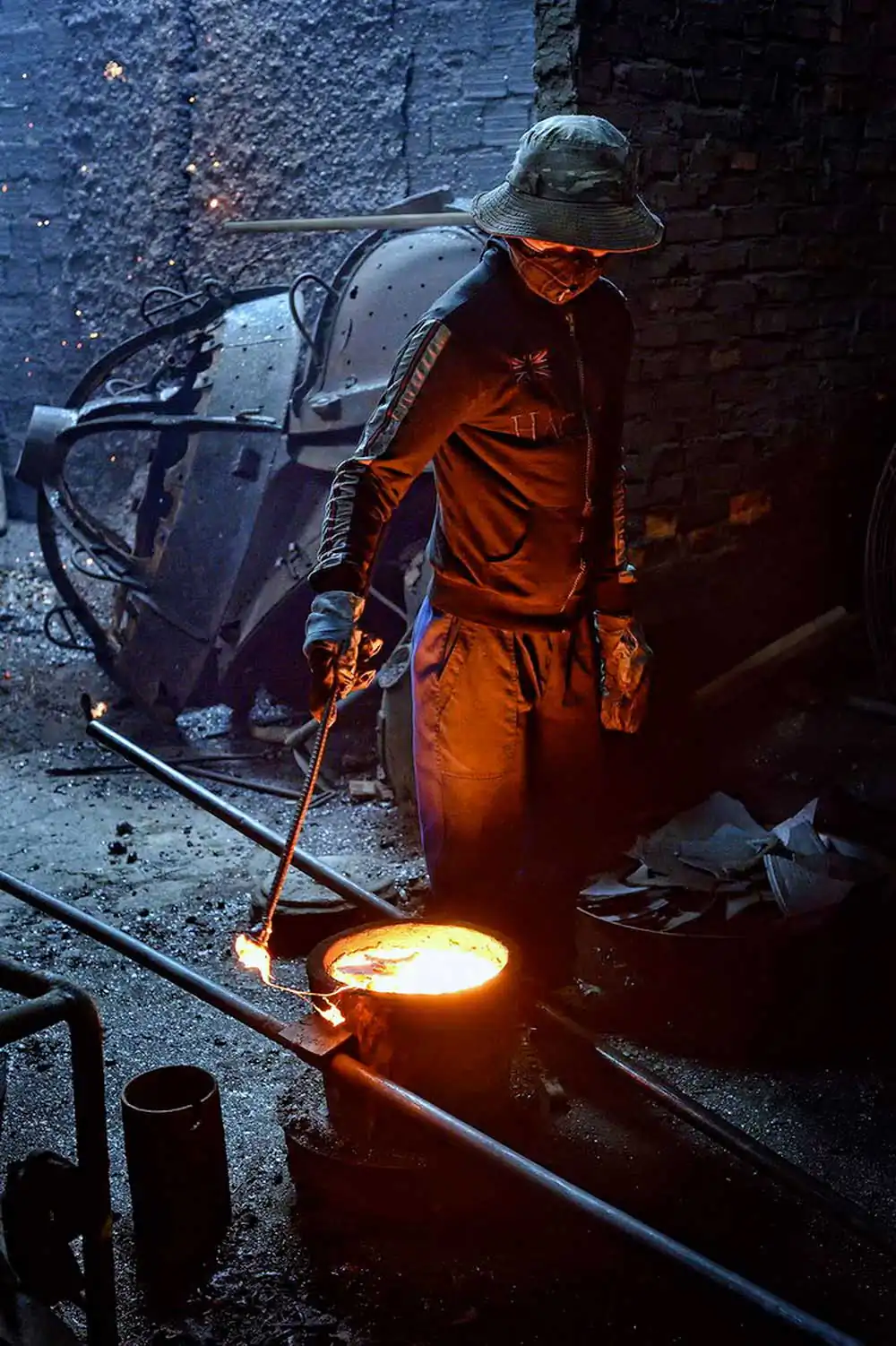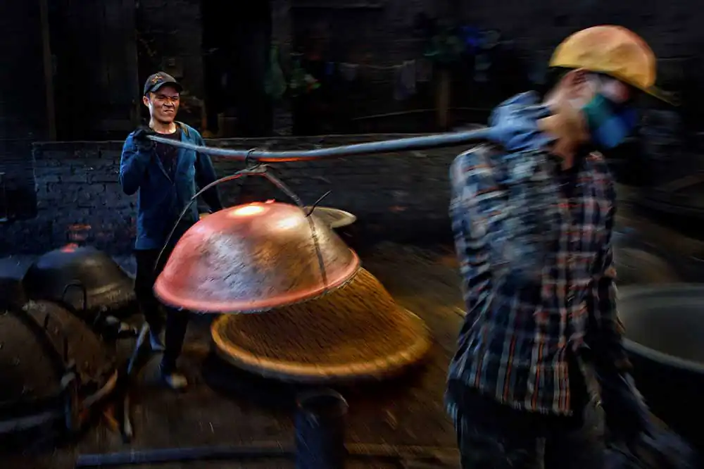 Despite the pandemic of Covid, the factories were still working to provide diverse products, from decoration items to household appliances such as stoves, cast iron pans… Contrary to the tranquility on the streets, the factory was pretty bustling like a beehive with dozens of workers. The re-used metal material was put into the furnace at 1200° C, then poured into the mold while it was still being melted, the main product is cast iron pan of all sizes. It was such hard work but the workers were very friendly and optimistic, it was not easy to work in such a harsh environment with only masks and protective gloves.