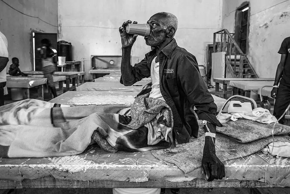 ‘CHOLERA RECOVERY’ – CARREFORE, HAITI. JANUARY 14, 2015. At Cholera Treatment Center (CTC) in one of Port-Au-Prince’s coastal outskirts, an elderly man gulps water for rehydration. According to the World Health Organization, children and the elderly are proven to be the most susceptible to cholera.