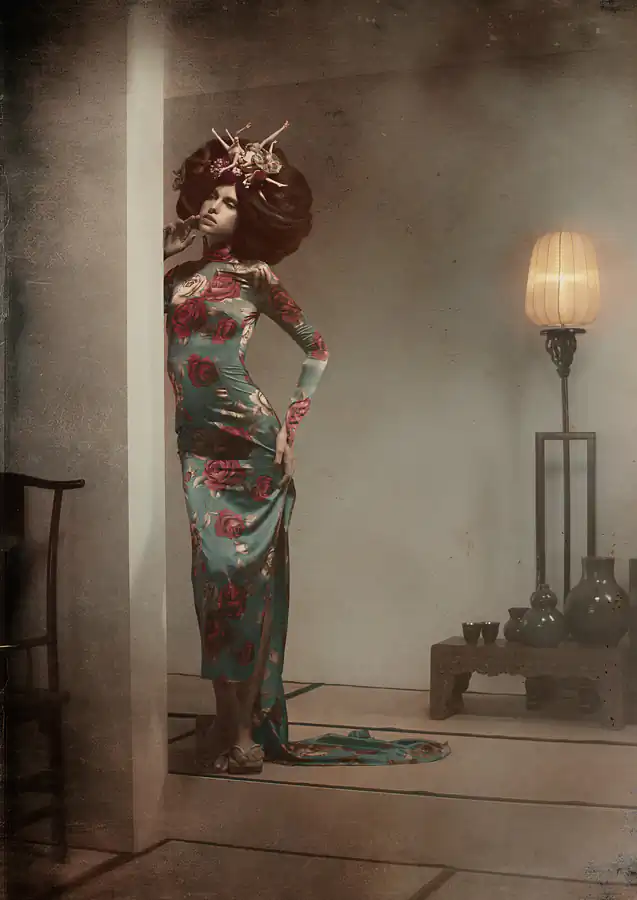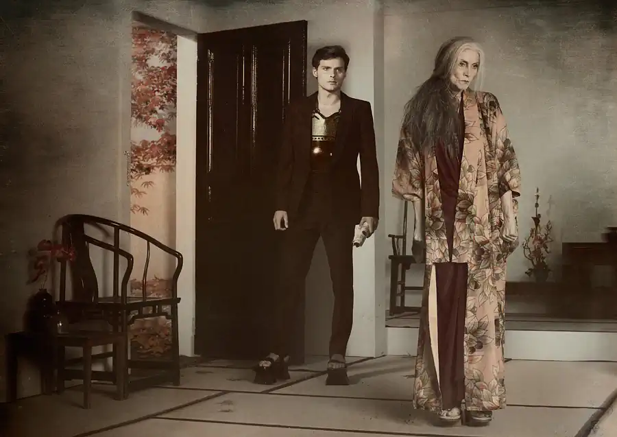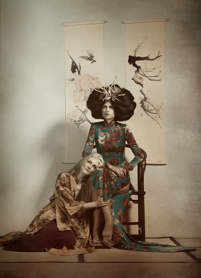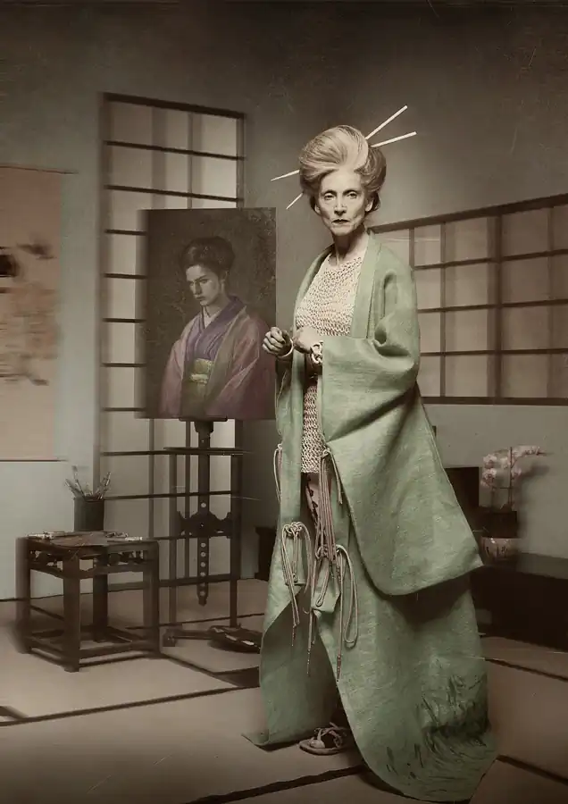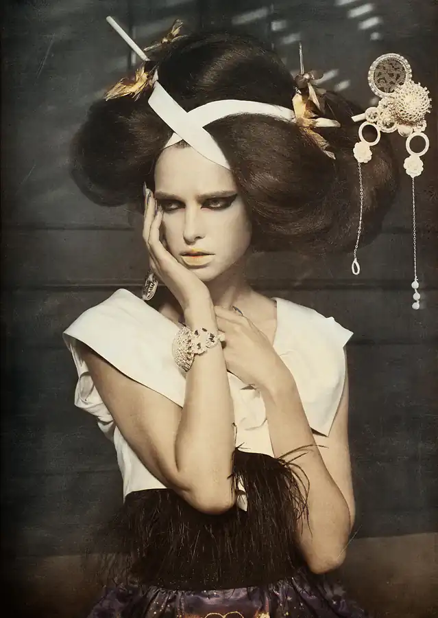 Hanjo is a photographic homage to Yukio Mishima’s adaption of the 15th Century Nôh play. Nôh is an opera form unique to Japan where it flourished in the 14th and 15th centuries. In most Nôh plays the lead character is either someone who has died or a woman who has gone mad. These characters exist in an alien world from which they descend into the reality of our world in search of their soul’s salvation, and converse with a person living in the real world. Nôh drama is other-worldly, like a dream.