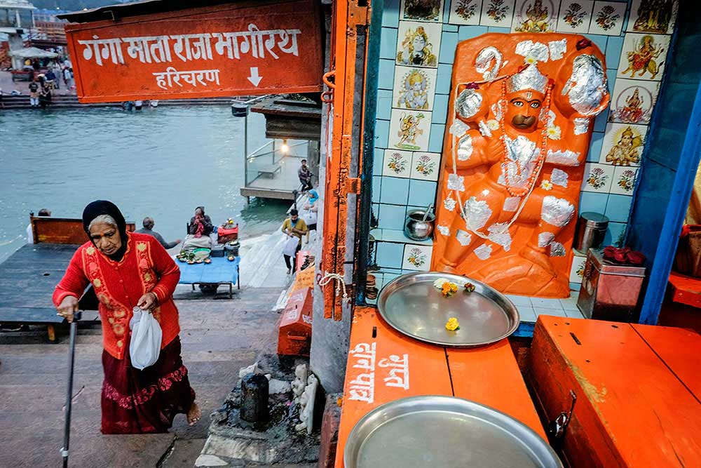 Each evening as the sun’s last rays reflect off the boundless waters of Mother Ganga, people gather for Ganga Aarti at Har-Ki-Pauri Ghat. . It is a spectacular ceremony of fire and songs, participated and performed by thousands of people who gather here from all over the country. It is the belief that this one tract of the Ganges at Har-ki-Pauri has the prower to wash away karmic sins and inch souls that much closer to god. Upon death, it is said the waters here carry the deceased’s ashes straight to Hari, the supreme god.