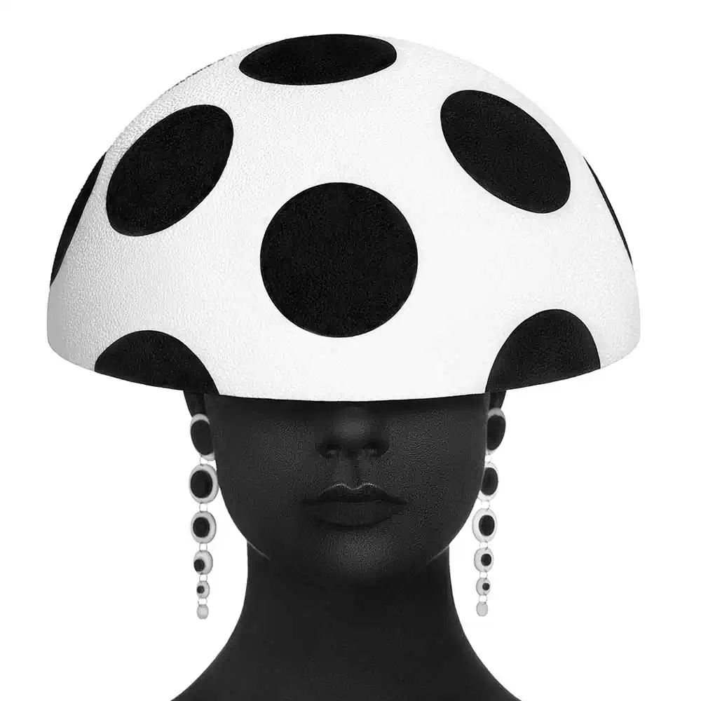 Marked by robust lines, exacting geometric forms, harmonious contrasts, and makeup harmoniously aligned with the hat motifs, this collection showcases a modern and unmistakably contemporary aesthetic. By offering a minimalist perspective that challenges the inherent opulence of fashion photography, it redefines style.