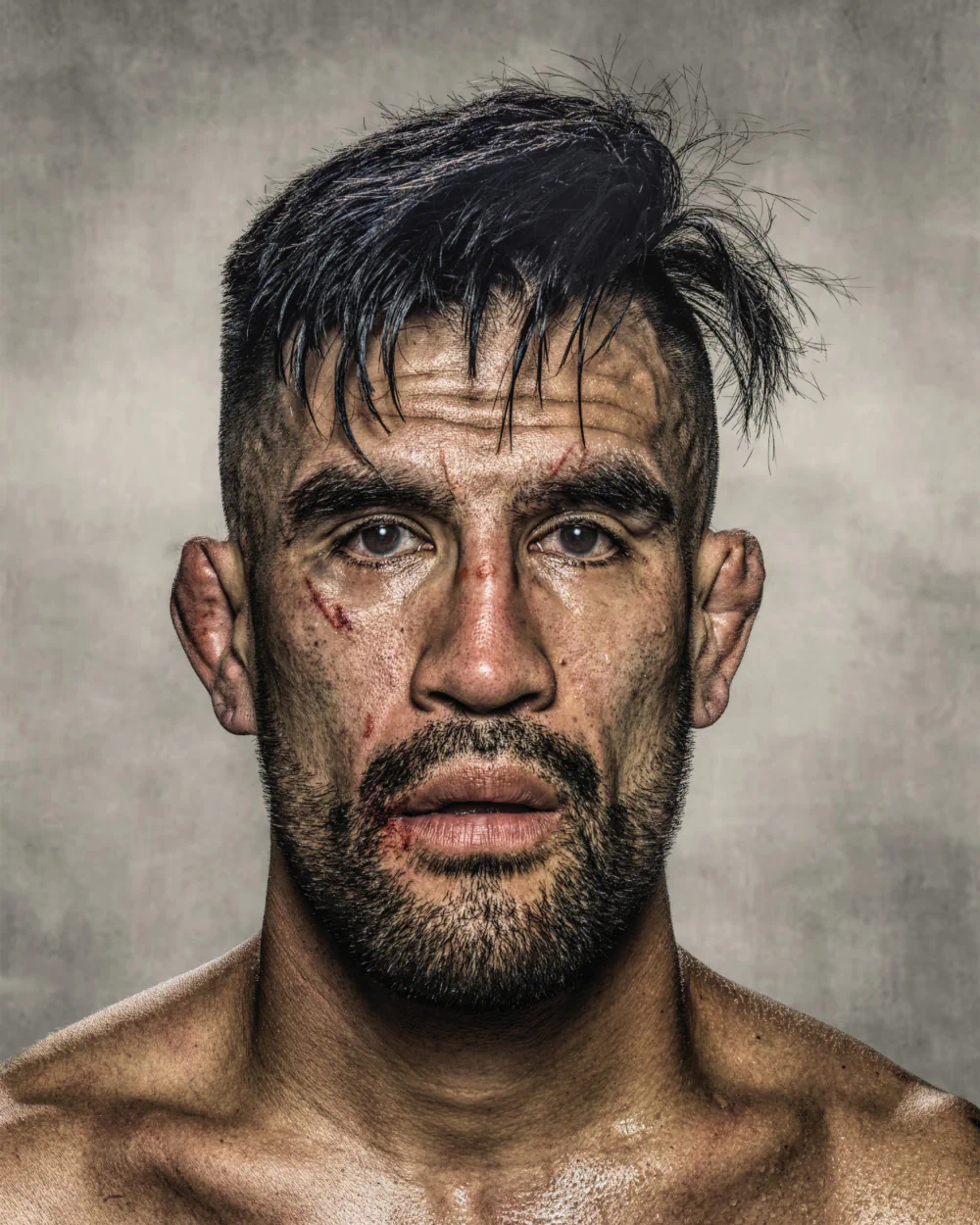 Inspired by Mike Tyson’s quip, “Everybody’s got a plan until they get punched in the face,” HEADSHOT explores the moment between violence and reflection, when pugilists step out of the ring, bloodied and adrenalized, yet entirely present. Within minutes of the final bell, they enter a portable studio. HEADSHOT is not about the spectacle of combat but about the psychological aftermath: vulnerability, endurance, and self-possession painted in strokes of celadon, mauve, and puce.