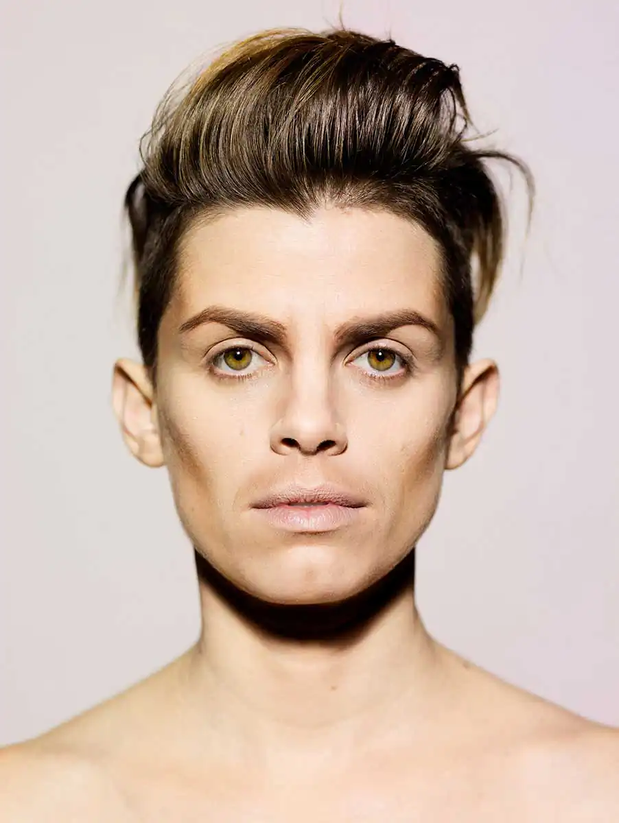 All props and backdrops were removed, as we felt the image’s message would be clearer and stronger without any distractions. In fact, we went further and got our model to disrobe, in an attempt to rid of all cliché the topic of gender. The choice of format – the traditional photographic portrait, combined in diptychs – and the directedness of an apparently bare, uncomplicated image effectively veil the profound complexity of the subject matter, and at the same time force the viewer to question the medium, and their ability to see through it.
