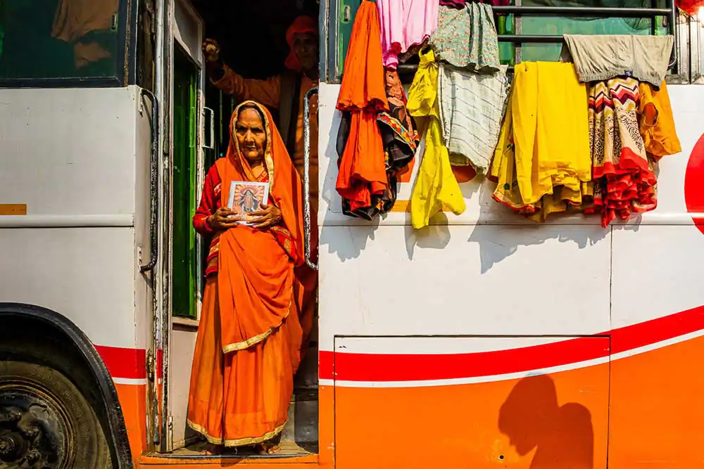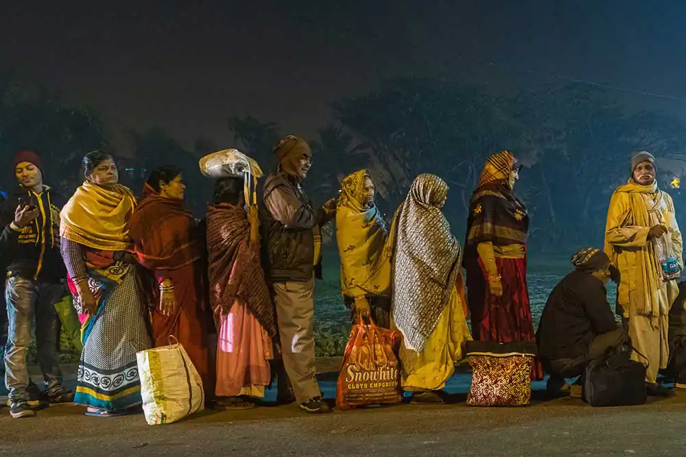 Somehow, this Mela is incredibly popular with Naga Sadhus (literally “Naked Yogis”), a highly respected sect of “holy men” followers of Shiva, known for their asceticism and renunciation of societal norms. The Ganga Sagar Mela takes place on Sangar Island in West Bengal. Some of the devotees travel for weeks in large busses to get there, one more indication of their devotion. The final step of the journey is a ferry crossing, which takes about an hour, but the wait to get on is, not surprisingly, interminable.