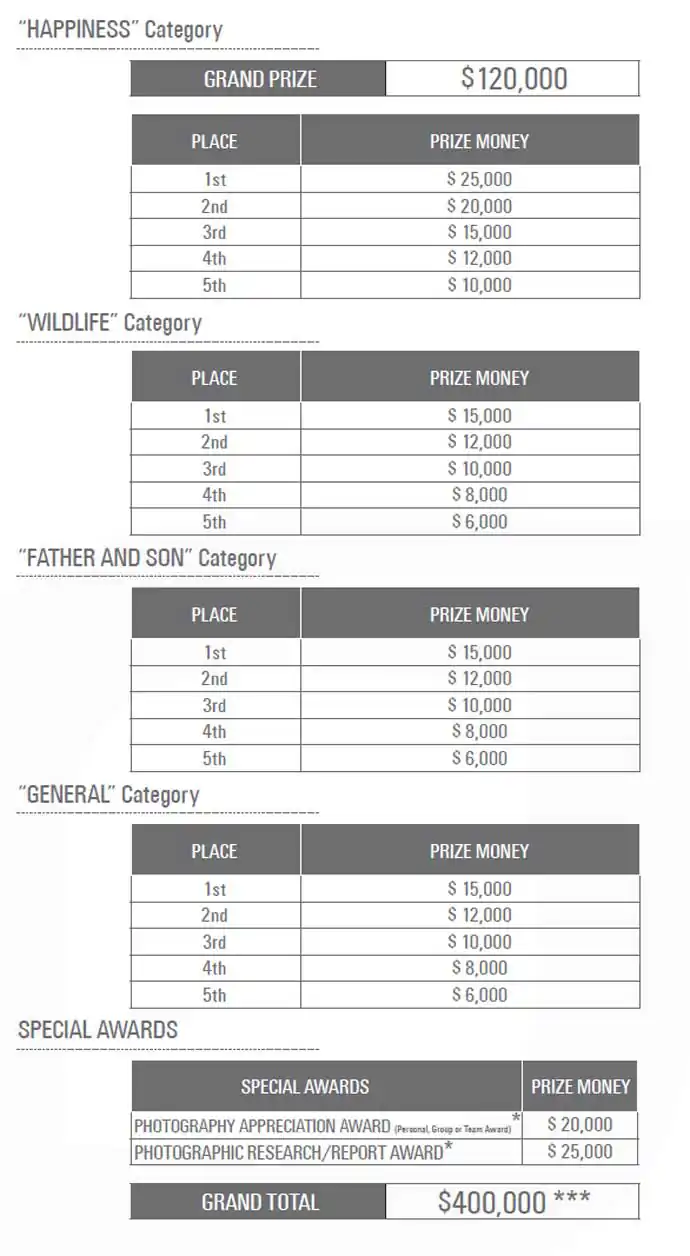 Categories and Prize Money for the Fifth Season of The Hamdan bin Mohammed bin Rashid Al Maktoum International Photography Award