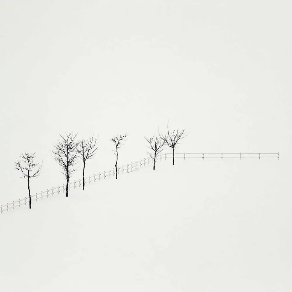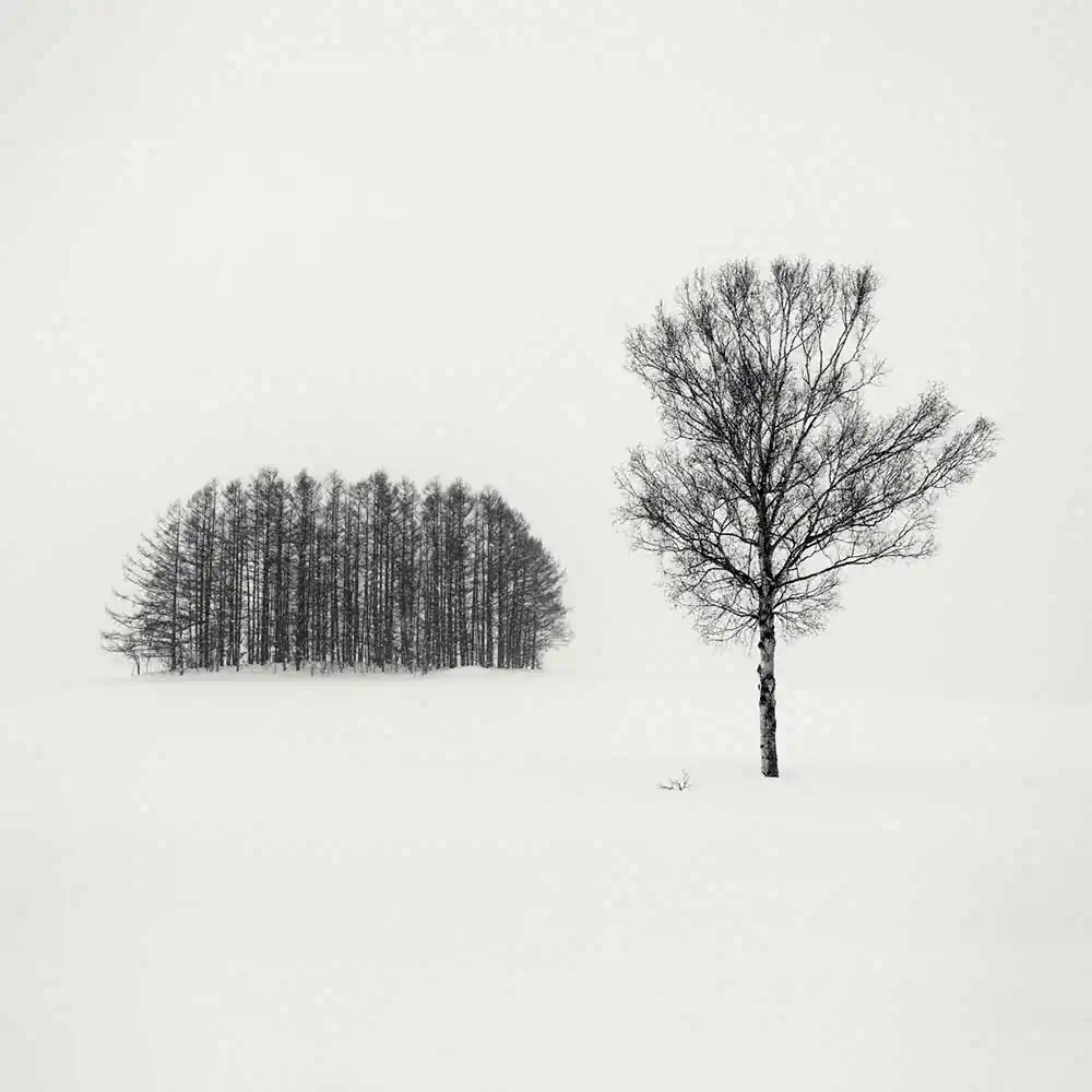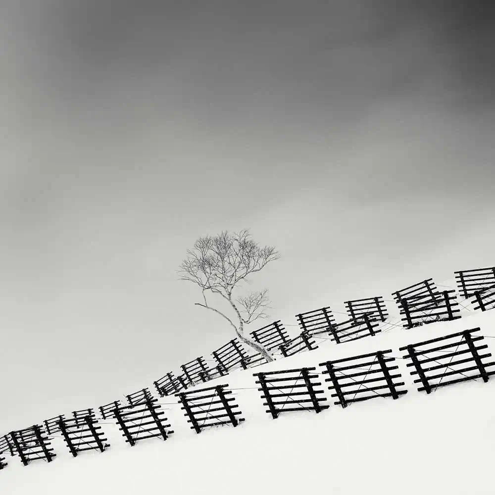 I have always deeply felt that Hokkaido trees in winter have a spiritual presence in the landscapes. The way they have been organized by man creates some contemplative sceneries that have inspired generations of philosophers, painters and artists over time. These naturally-shaped trees have a close connection with the traditional Japanese ink- painting (sumi-e) which has always been an important source of inspiration and has influenced my work for many years.These elements are for me the essence of the Hokkaido landscapes. They remain some symbols of the quietness that I particularly love on this island and that I try to convey in my photography. [Official Website]