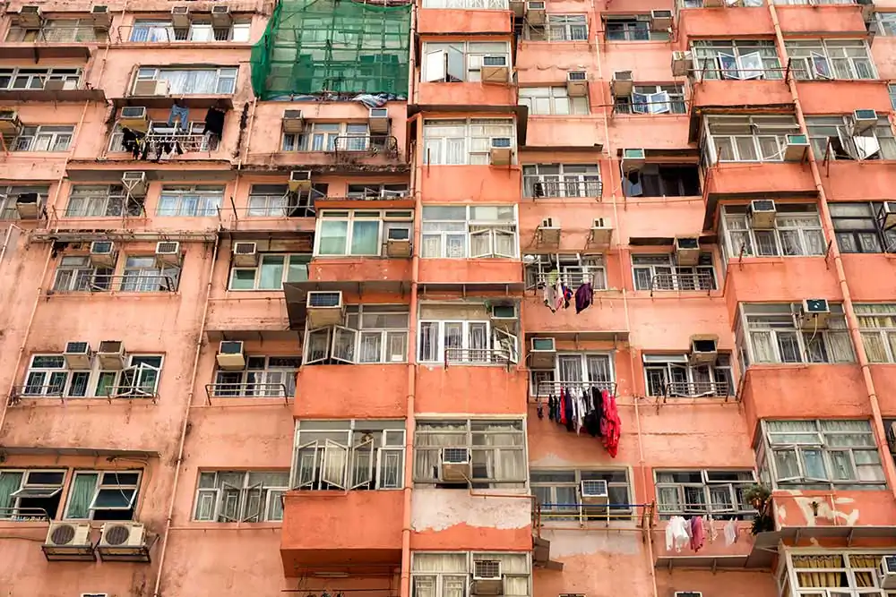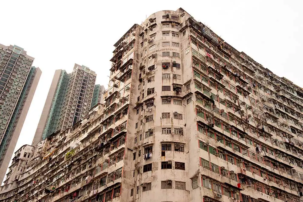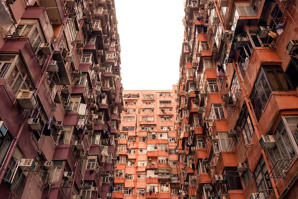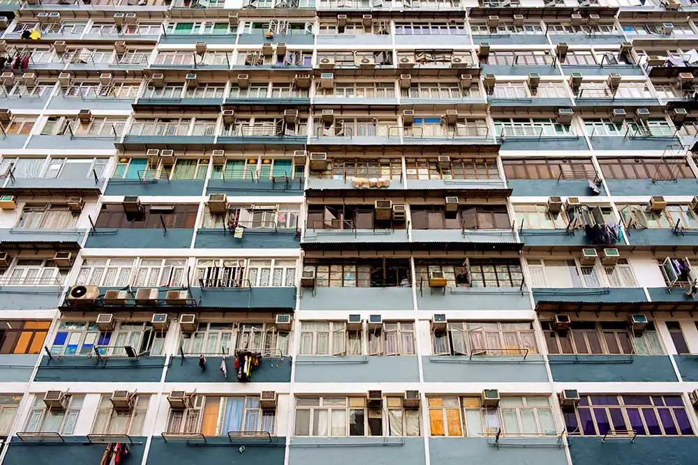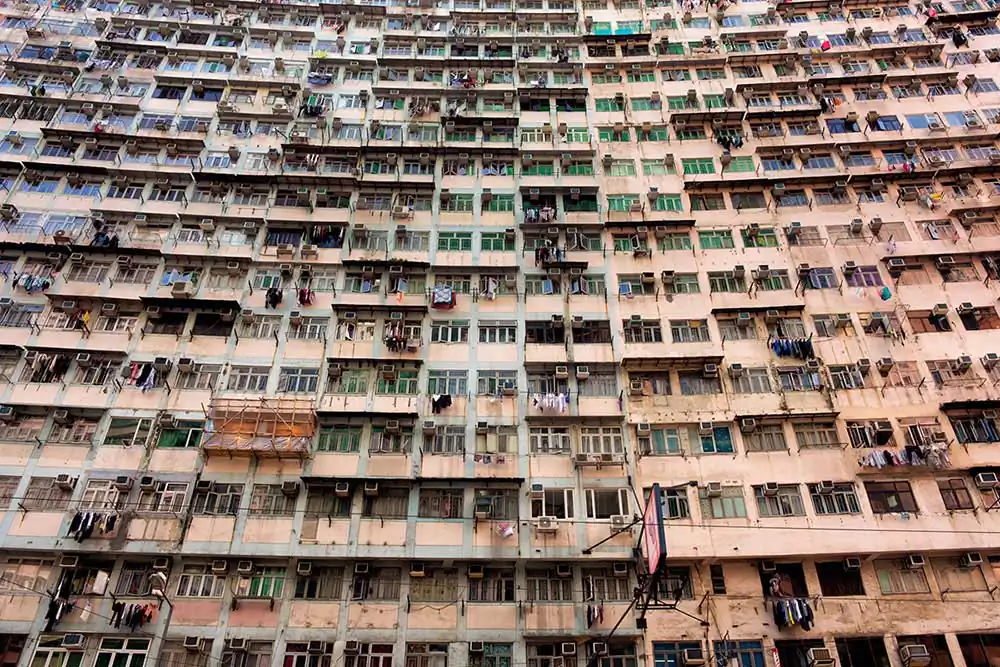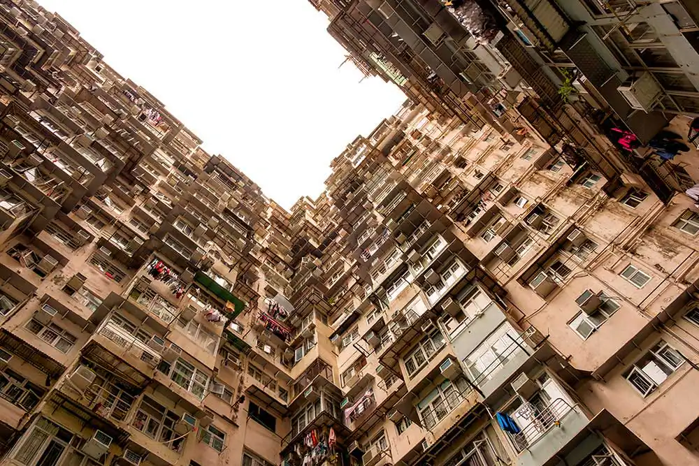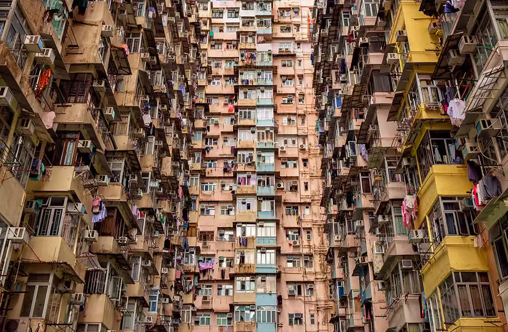 Hong Kong is one of the most population-dense cities in the world. Hong Kong’s population is about 7.4 million people or about 6600 people per square kilometer. The average apartment size is about 450 square feet (42 square meters) but most live in apartments less than 200 square feet (19 square meters).