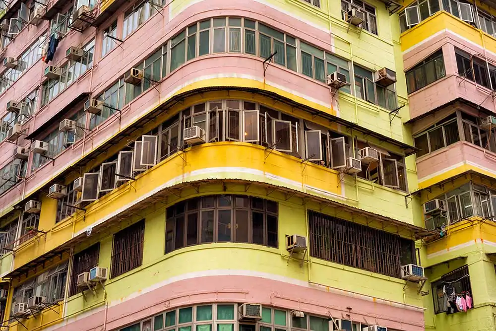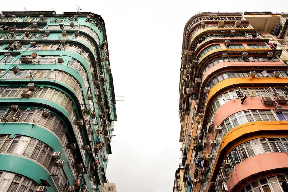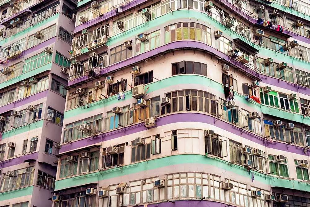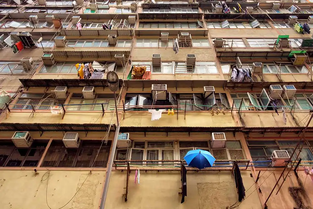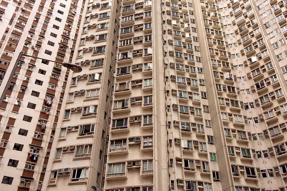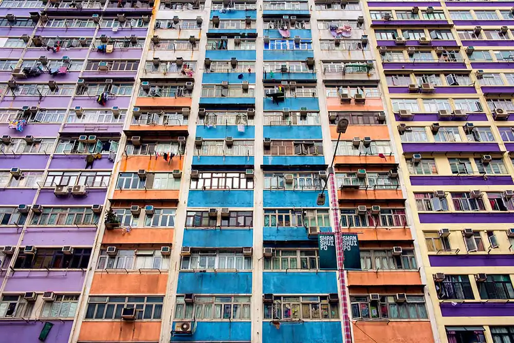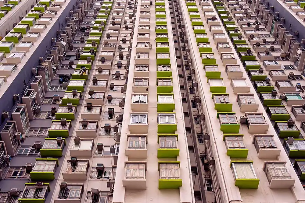 Hong Kong is one of the most population-dense cities in the world. Hong Kong’s population is about 7.4 million people or about 6600 people per square kilometer. The average apartment size is about 450 square feet (42 square meters) but most live in apartments less than 200 square feet (19 square meters).