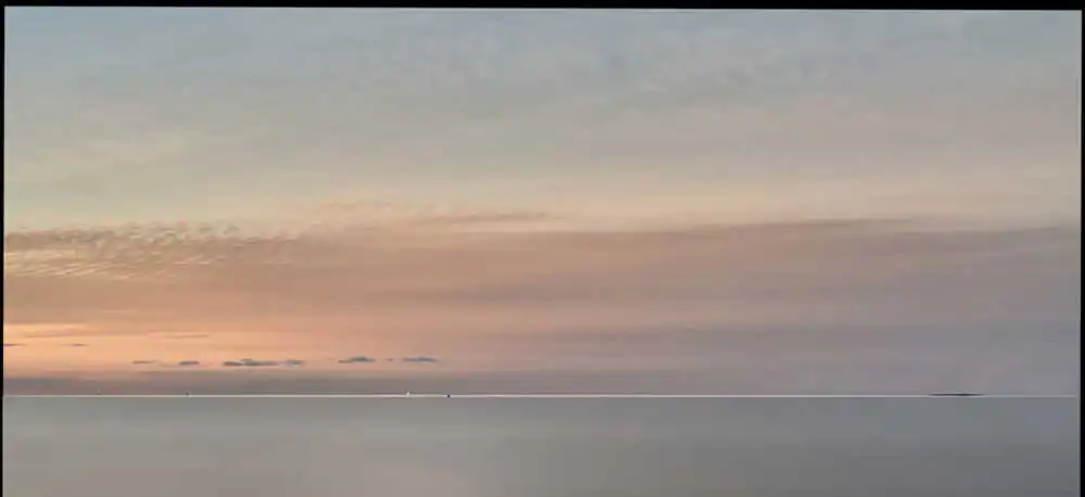 These images are distillations of many days when the wind blew almost everything away except for the transcendent light. They are intentionally minimal. I did not set out to create seascapes. I’m a street photographer by inclination. The shoreline has become the street where I now most frequently wander. This series of seascapes focuses on the horizon. That edge between sky and water. I am playing around with the horizon as the axis that bifurcates the conceptual and realistic, the found and created, the perceived and imagined. The horizon disrupts or fractures the image plane.