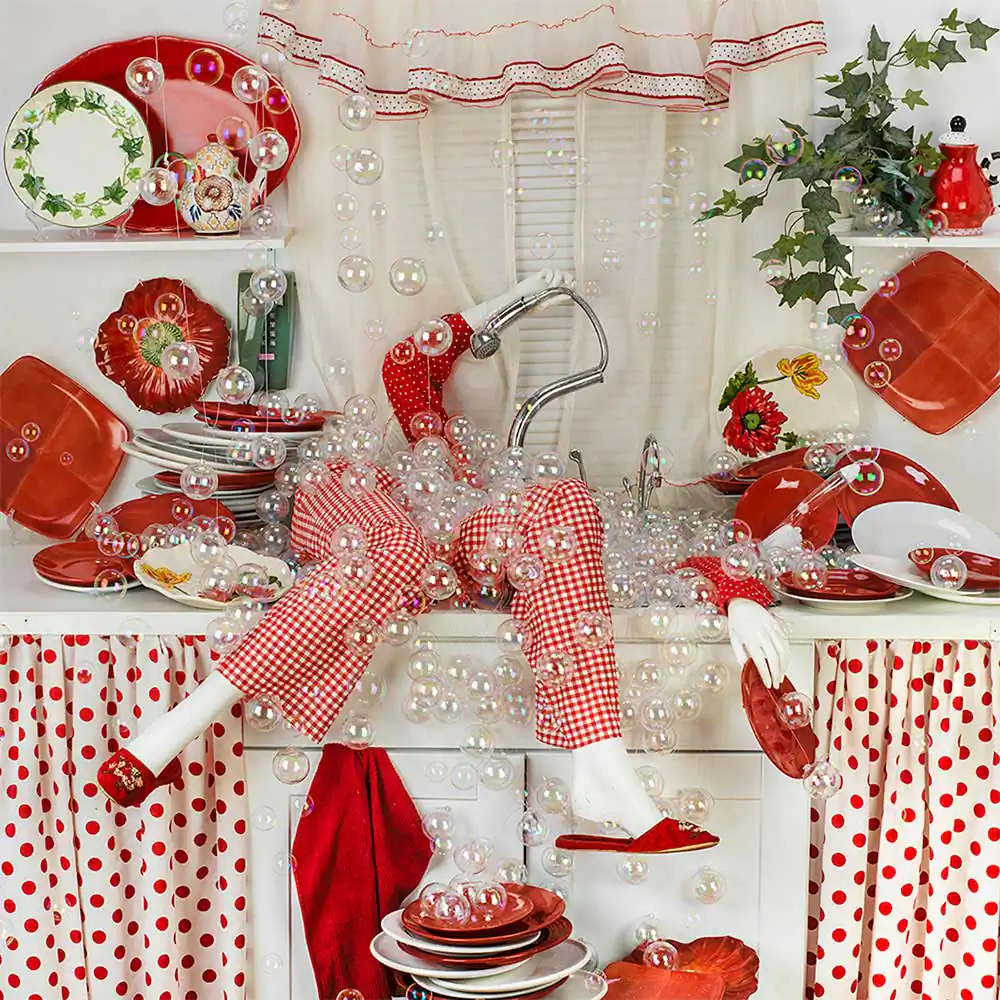 The Anonymous Woman series has been exhibited internationally and has won multiple awards including Carroll being acknowledged as one of Photolucida’s “Top 50” in 2104. Her work has been featured in prestigious blogs and international magazines such as the Huffington Post, The Cut, Ain’t Bad Magazine, and BJP in Britain. Her work has been shown internationally in many one-person exhibits in China and Europe, as well as the USA. (White Box Museum, Beijing, Art Institute of Chicago, Royal Photographic Society, Bath, England, among others.) She has participated in over 100 group exhibitions nationally and internationally, and her work is included in many public and private collections. After teaching photography for many years, Carroll has enthusiastically returned to the studio in order to delight viewers with her playful critique of home and excess. She is currently Artist in Residence at Studios Inc. in Kansas City, Missouri. [Official Website]