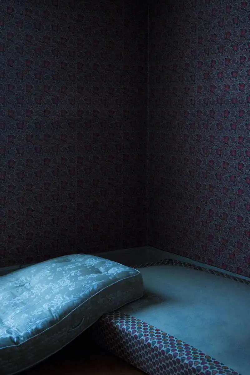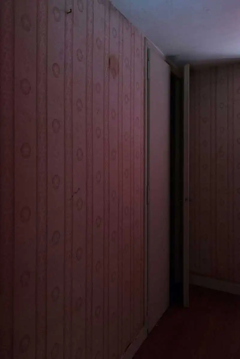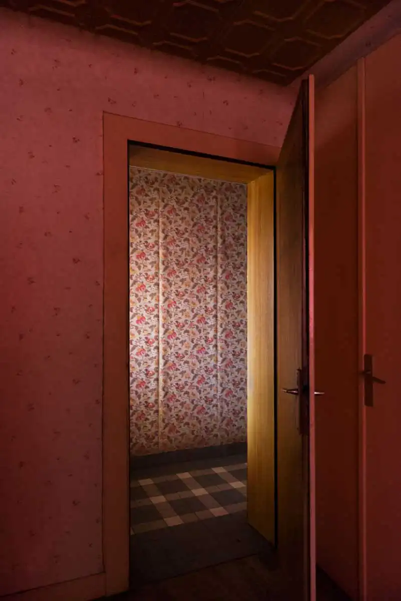 Huis Clos tell us about the loss of bearings. Humans tend to be committed to a routine, places, people, job. When an aspect of our life change, we have to make an effort to rebuild ourself to feel comfortable again. But it can be very difficult to attend, so we can feel powerless, meaningless. Here, the desert interiors them self lost their meaning. They slowly deteriorate whilst resisting over and over. Door after door, room after room, we find ourselves enclosed in a maze of repetitive spaces marked by the time. Wallpapers indicate a past presence, a faded animation. We are like enclosed in a memory simultaneous sweet and disturbing.