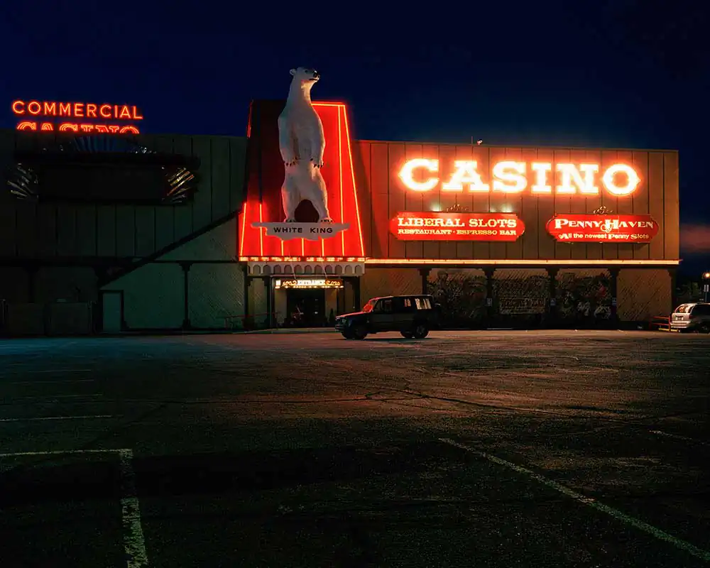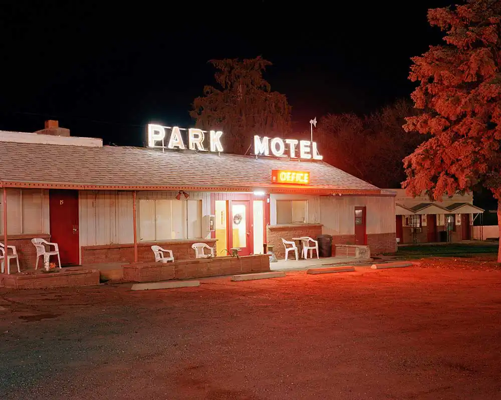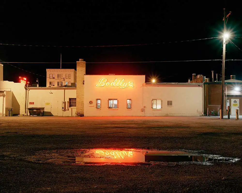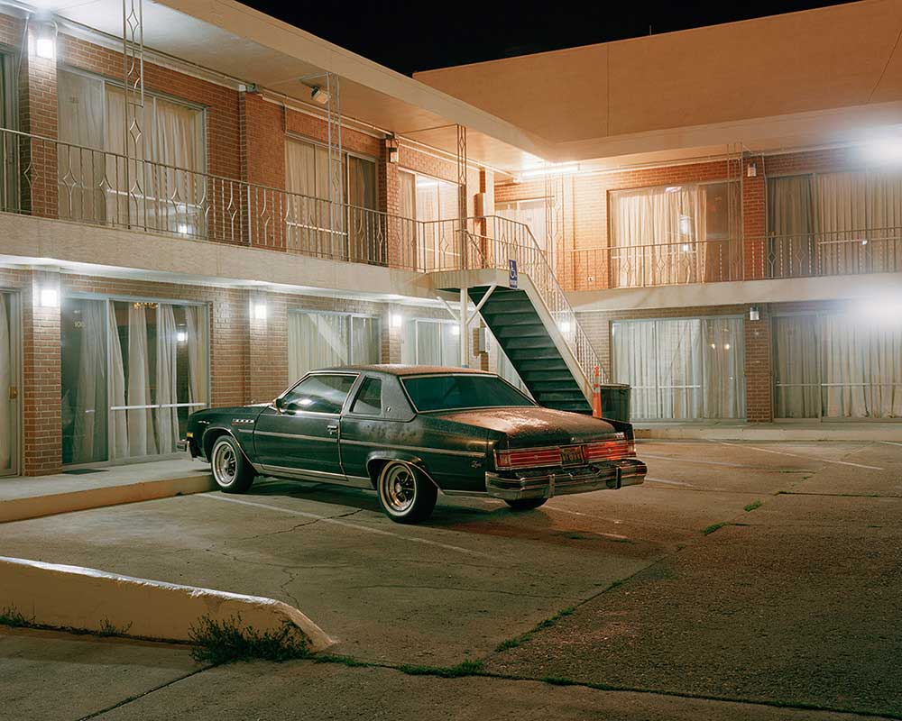 Traveling throughout the state of Nevada to places such as Reno or Elko or Ely he has found solace in his search for something that “is a reminder of the past.” Egan resides in the San Francisco bay area but journeys to remote areas of Nevada to find places that are teetering on the edge and creates long exposure photographs at night. The photographs are sharp, focused, and full of colors that emanate from old neon signs of casinos and motels to green mercury vapor streetlights to vintage cars perfectly parked in front of the lens. There is a beauty to the use of color and choice of framing that translates to feelings of nostalgia and absence.