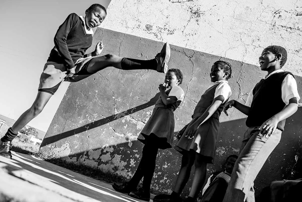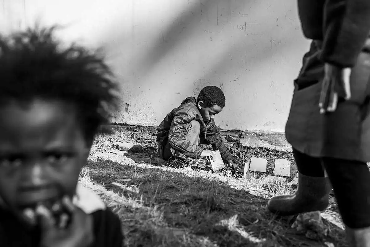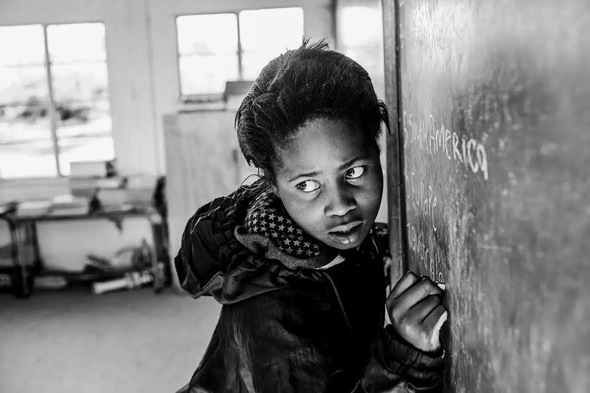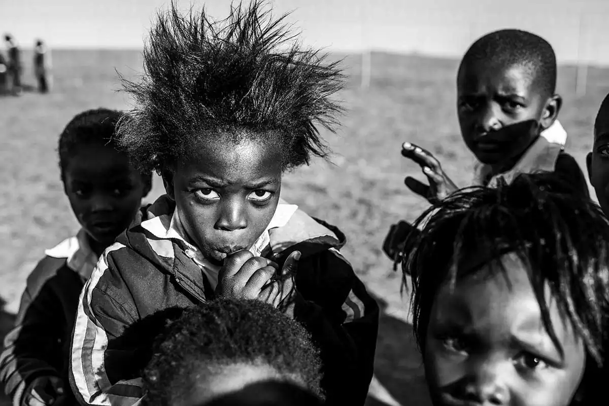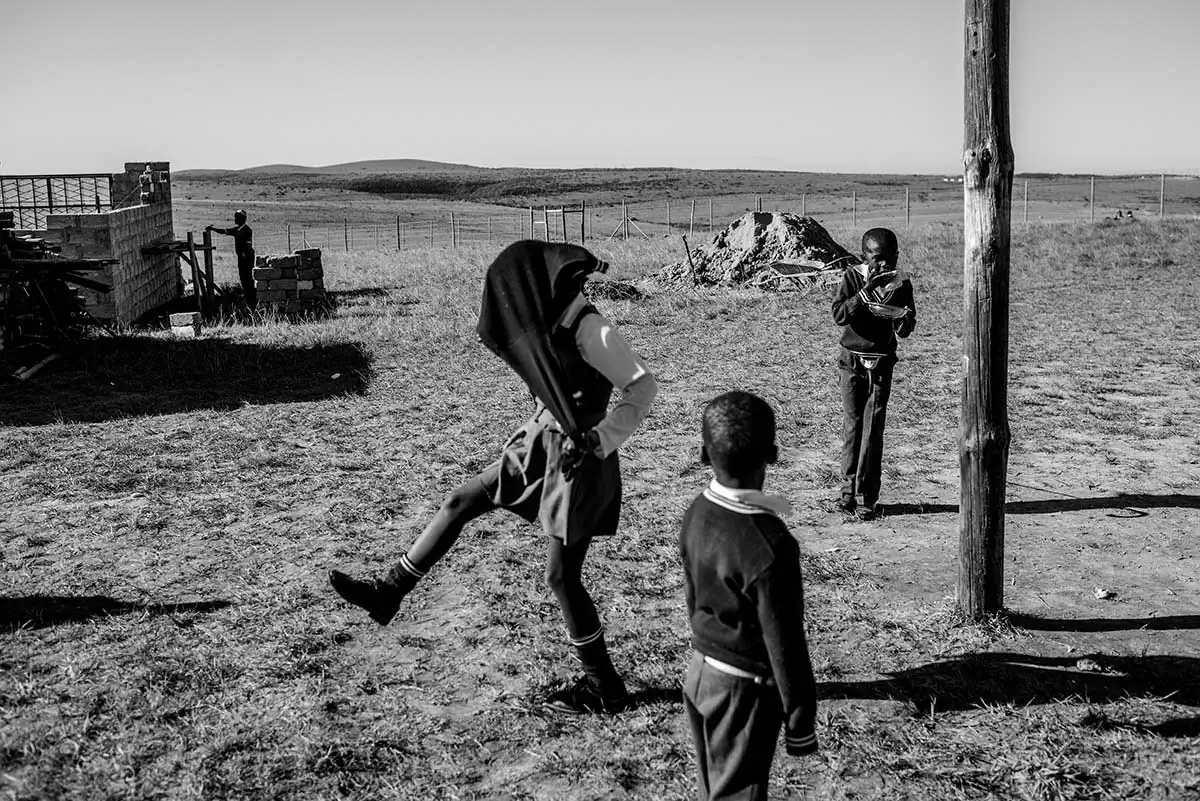 The Eastern Cape is a part of South Africa where most of the Xhosa people tribes lived and are still living. The Eastern Cape is rural and has some very remote areas. She was interested in finding some personal daily life stories of the young Xhosa children who live here. Therefore she visited a lot of villages as well several schools, the place to meet groups of children. Because it was almost midterm holidays and most of the exams and tests were already done, most of the schools didn’t have a proper teaching schedule anymore. Some teachers didn’t even show up anymore. And the kids were just hanging around.
