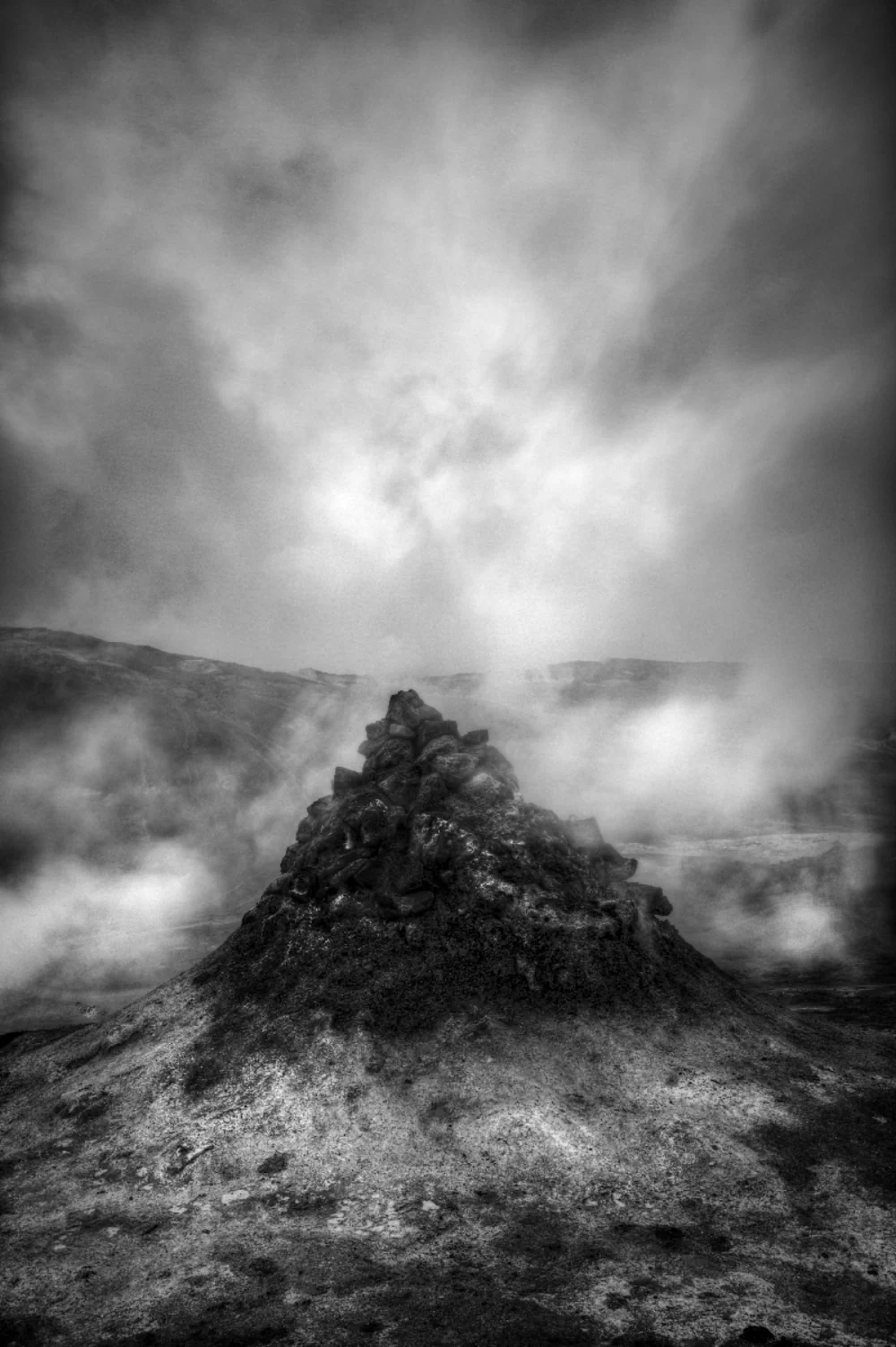 Working in such an environment demands patience, endurance, and deep attentiveness. Weather conditions change rapidly, and moments of extraordinary light may last only seconds. He often hikes long distances carrying equipment across uneven terrain, waiting for the precise convergence of atmosphere, form, and light that allows a photograph to emerge. These experiences are as much a part of the work as the final print. The physical engagement with the land fosters a profound connection that shapes how he sees and responds to each scene.