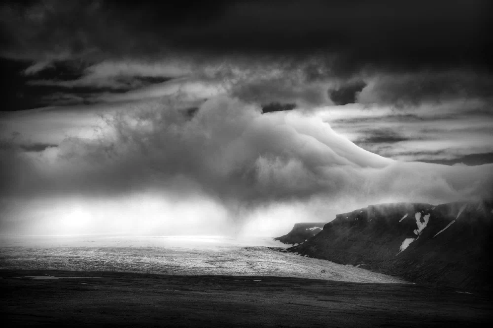 The Iceland Project grew organically from this lifelong exploration. After photographing countless environments shaped by wind, water, ice, and volcanic activity, he felt an instinctive pull toward Iceland’s dramatic terrain. Its stark contrasts and elemental beauty aligned with his desire to create images that move beyond documentation and into interpretation.