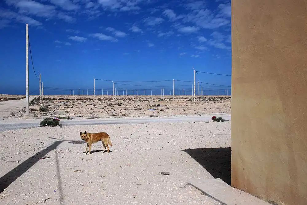 Being under constant surveillance by Moroccan security forces, Sahrawi activism is harshly repressed. Freedom of expression and assembly are severely restricted, human rights violated. The authorities deny entry to Western Sahara, or expels foreigners : journalists, human rights experts, jurists, activists, UN staff members. In this territory, one can be guilty of an offence for recognizing the existence of Western Sahara as a separate entity from Morocco and liable to imprisonment for jeopardizing state security at risk. Deciphering the landscape and urban planning is a way to bypass the lack of freedom due to police obstruction. This shattered nature carries within it the traces of man and his intentions.