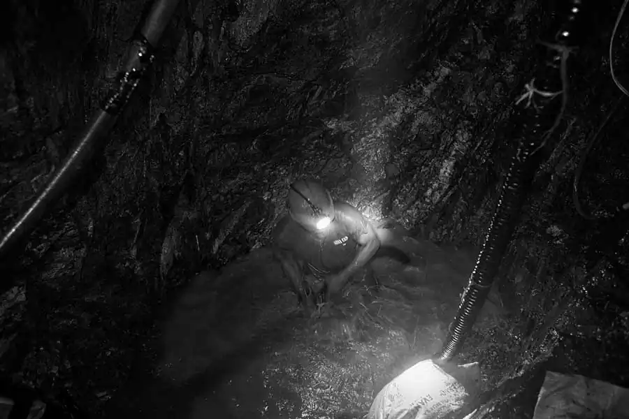 Forget about modern mines with trucks, excavators, lifts, emergency exits and emergency rescue teams: here there is no running electricity, but old diesel power generators, constructions in wood and rope, and pipes of worn-out rubber tubes. I was expecting something similar, but rather than a mine, this place feels like a real mouse-trap.