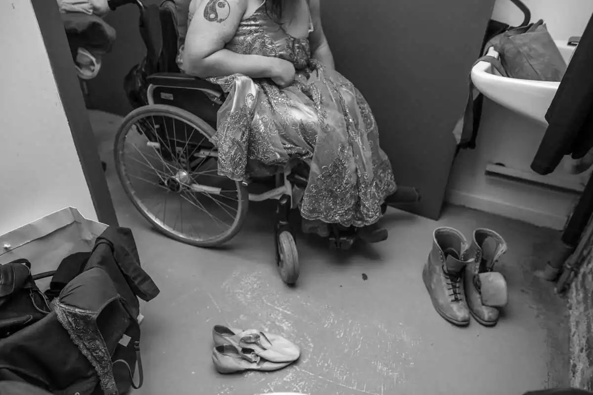 In the summer of 2016, I met Claire C. a then 33-year-old wheelchair-bound woman, suffering from severe debilitating pains in her right foot, epilepsy and spastic quadriplegia – a form of spastic cerebral palsy. Since the age of six, her life has been about life-threatening accidents, invasive operations, severe painkillers, and ultimately wanting to end her life. Nevertheless, she remains hopeful, owns an apartment, hosts refugees, travels the globe and is a theatre performer.