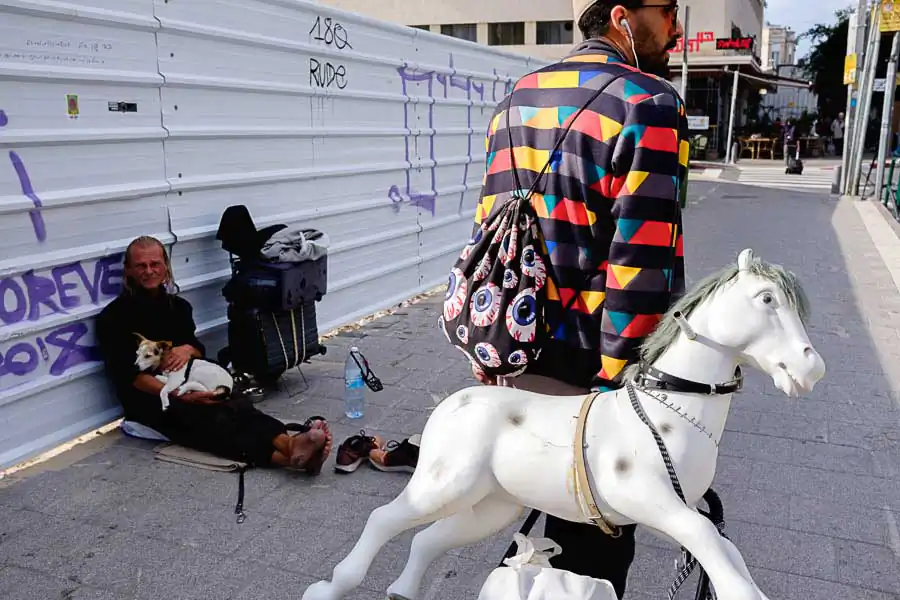 Many photographers say that the most important thing, other than a good story is the ability to ask yourself as a photographer why you photograph what you are taking.After years of wondering and taking pictures of the street without understanding what I was looking for, I understood who I was. Yes, I did not believe it, but the street shot also helped me solve problems with myself. I realized there were many layers in me, on the one hand the clown, the comedian, the one who always sought color, laughter and a surprising end to every joke. On the other hand, a deep melancholy loneliness that makes me converge inside me, wanting to be alone for a moment. I realized that it could not exist without it. I realized that the street was me and I was the street.
