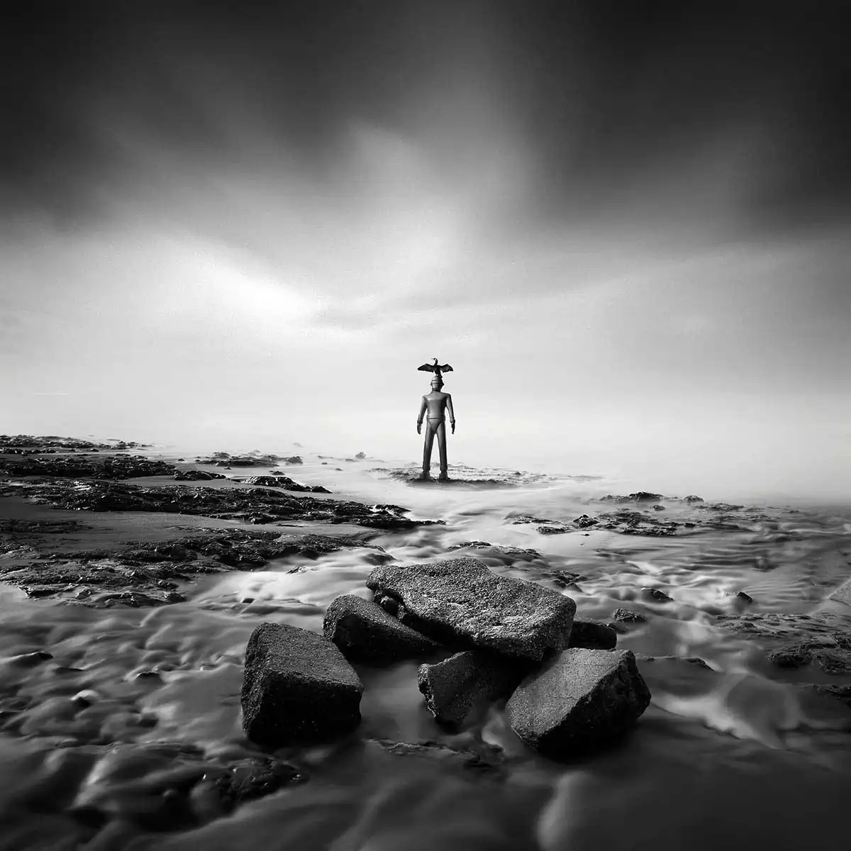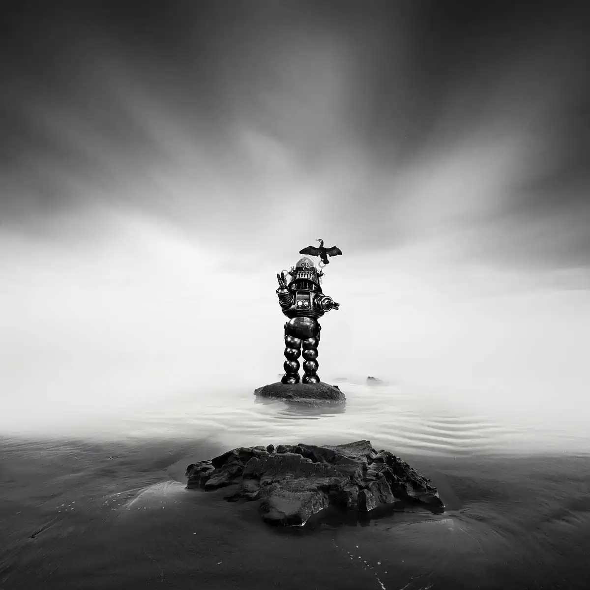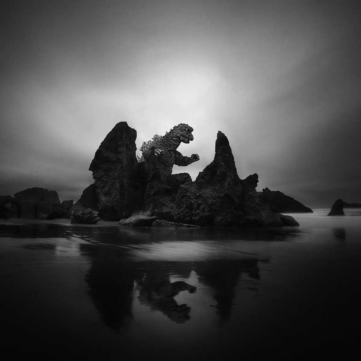 I always find it particularly curious that so many modern moviegoers demand perfect, believable special effects, as if the fantasy could be reality, in order to suspend their disbelief and watch a film that is so obviously grounded in pure fantasy, pure escapism. Such a demand implies a diminished ability and willingness to actively imagine, to have all the work done for one. After all, the claim that something unbelievable and impossible is not believable enough– because the illusion is not strong enough– is, at the very least, odd, and, in a very small part, why, perhaps, so many kids today are unlikely to play elaborate games born from their own imaginations, choosing, instead, to play hyper-realistic video games that tell them the stories rather than making up their own. Before I am labeled an outdated curmudgeon that refuses to stay with the times, I want to stress that such thoughts are only born from my own very distant, memories of playing games that I made up after watching these kinds of movies and TV shows and reading books and comics. Indeed, a significant part of the allure of those highly imaginative and fantastical stories of distant worlds and monsters and heroes– even if they were unsophisticated and, at times laughable in how silly they actually were– was that spark of imagination that ignited my own stories when I played. These images— with their various characters, machines and creatures from the books, comics, and films that readily activated my imagination as a child— are in no way meant to be realistic. Intending to emulate the rudimentary special effects of films past, I had no desire to make these visually believable. I want viewers to embrace these images’ flaws and open their imaginations to the simple, whimsical stories each one tells. They are, in the end, meant to be merely nothing more than a nostalgic look back at my childhood engagement with such fantasies, and how— even though I no longer pay much attention to these worlds— that same inspiration, on some level, still inspires me to create my own stories (and, as the backdrop, I have used many of my long exposure seascapes to help tell my versions of these stories). While most of my intellectual pursuits, and, thus, my photography, now reflects far more serious ponderings of things like poetry, music, film, Zen, and nature, I have never entirely severed my ties to those early days of wonder. Indeed, even in my often-serious considerations of existence, a little bit of this childhood wonder leaks into my thoughts (such is the allure and folly of nostalgia). With all of this in mind, it is my hope that one or two of these images might yield a smile— whether such smiles come from a similar, shared memory of imagined worlds or from the touch of whimsy that I have tried to infuse into each one of these very low-tech images (or, perhaps, both). [Official Website]