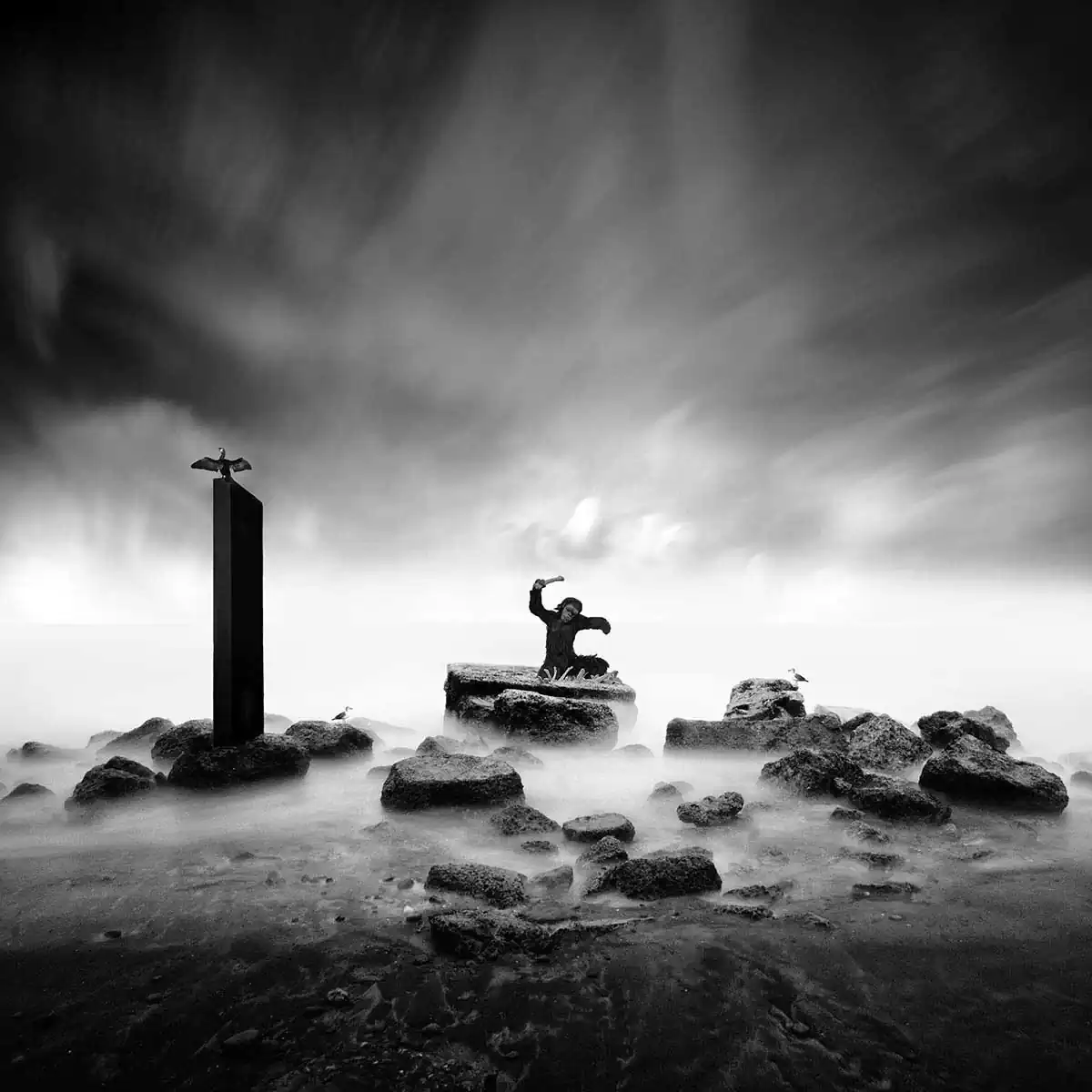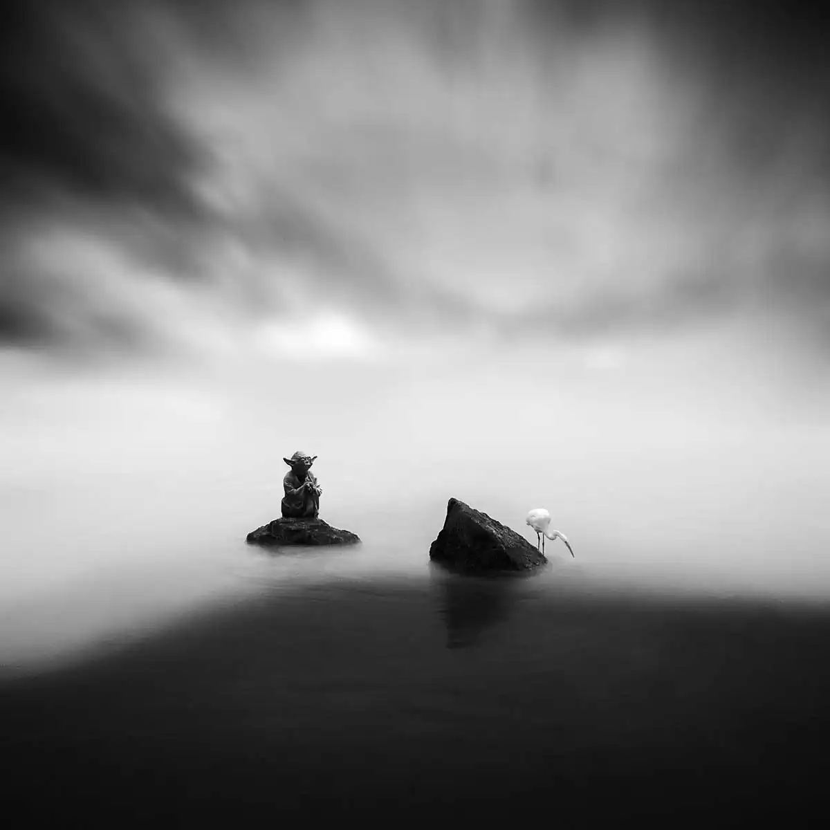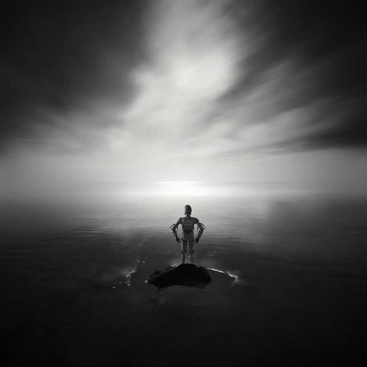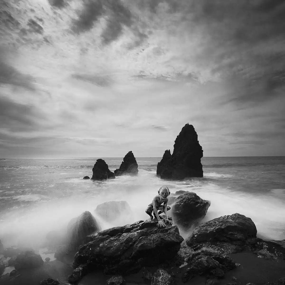 I always find it particularly curious that so many modern moviegoers demand perfect, believable special effects, as if the fantasy could be reality, in order to suspend their disbelief and watch a film that is so obviously grounded in pure fantasy, pure escapism. Such a demand implies a diminished ability and willingness to actively imagine, to have all the work done for one. After all, the claim that something unbelievable and impossible is not believable enough– because the illusion is not strong enough– is, at the very least, odd, and, in a very small part, why, perhaps, so many kids today are unlikely to play elaborate games born from their own imaginations, choosing, instead, to play hyper-realistic video games that tell them the stories rather than making up their own. Before I am labeled an outdated curmudgeon that refuses to stay with the times, I want to stress that such thoughts are only born from my own very distant, memories of playing games that I made up after watching these kinds of movies and TV shows and reading books and comics. Indeed, a significant part of the allure of those highly imaginative and fantastical stories of distant worlds and monsters and heroes– even if they were unsophisticated and, at times laughable in how silly they actually were– was that spark of imagination that ignited my own stories when I played. These images— with their various characters, machines and creatures from the books, comics, and films that readily activated my imagination as a child— are in no way meant to be realistic. Intending to emulate the rudimentary special effects of films past, I had no desire to make these visually believable. I want viewers to embrace these images’ flaws and open their imaginations to the simple, whimsical stories each one tells. They are, in the end, meant to be merely nothing more than a nostalgic look back at my childhood engagement with such fantasies, and how— even though I no longer pay much attention to these worlds— that same inspiration, on some level, still inspires me to create my own stories (and, as the backdrop, I have used many of my long exposure seascapes to help tell my versions of these stories). While most of my intellectual pursuits, and, thus, my photography, now reflects far more serious ponderings of things like poetry, music, film, Zen, and nature, I have never entirely severed my ties to those early days of wonder. Indeed, even in my often-serious considerations of existence, a little bit of this childhood wonder leaks into my thoughts (such is the allure and folly of nostalgia). With all of this in mind, it is my hope that one or two of these images might yield a smile— whether such smiles come from a similar, shared memory of imagined worlds or from the touch of whimsy that I have tried to infuse into each one of these very low-tech images (or, perhaps, both). [Official Website]