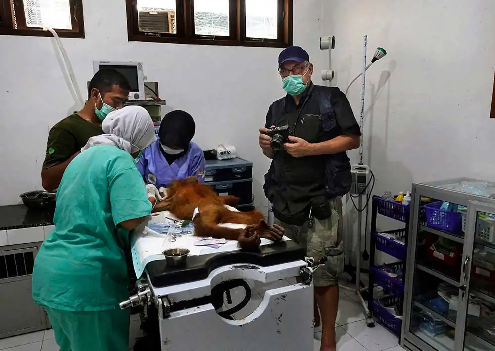 In Indonesia during the orangutan project, for a particular shot I needed to buy a remote control with a specific cable for the camera and a special tripod (octopus style) with flexible arms to wrap around a tree, I asked a local friend photographer to buy it on the Internet. A few days later it was delivered. I also ordered the fisherman’s vest with many pockets to have everything handy when working in the orangutan clinic and walking in the jungle. I adapt my way of working to the story I am shooting.