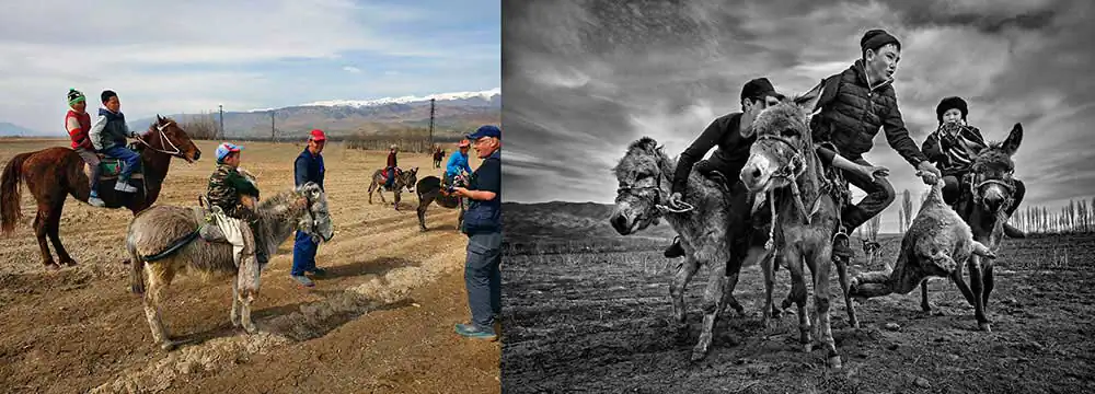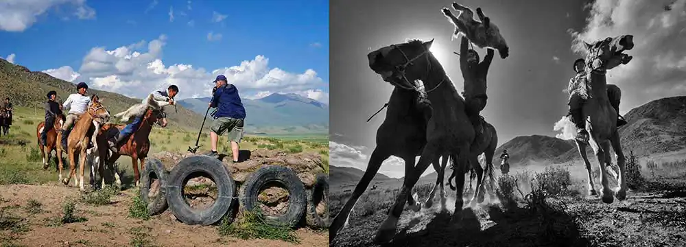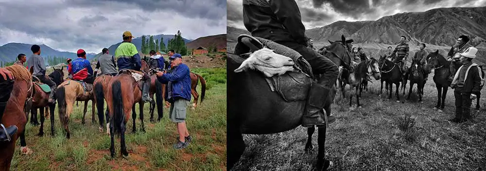 Story: Saving Orangutans in Sumatra, Indonesia A medical check on the operating table at the quarantine center in Sibolangit.Story: Saving Orangutans in Sumatra, Indonesia A sedated orangutan is being weighed before a medical check at the quarantine center in Sibolangit.Story: Living for Death in Sulawesi, Indonesia / Ceremony of the cleaning of the corpses. A family member has opened the coffins and on display are Captain Lode Sarungu, who passed away 12 years ago at the age of 75, leaning against the house on the left, and his mother Dandan lying on the red cloth in the foreground.Story: Living for Death in Sulawesi, Indonesia / Ceremony of the cleaning of the corpses. A family member has opened the coffins and is cleaning a corpse.Story: Saving Orangutans in Sumatra, Indonesia General view of the jungle during the rescue of a 15-year-old female orangutan who the team names Linda. This is the moment when they wrap the orangutan in the safety net and carry it to a flat surface where the veterinarian will perform a medical check. I am completely drenched in sweat from the heat and humidity. I use a blue waterproof bag to protect my camera in between shots.Story: Kid Jockeys in Indonesia Kid Jockeys aged 5 to 10 race the whole day, every day for one week. Left: Aside from the races, there are many rituals involved like this purification ceremony. Right: The final picture. Fuji X-Pro2 with14mm lensStory: Saving Orangutans in Sumatra, Indonesia Left: Once the mother (Hope) had been sedated, the vet held the baby in his arms. Later, in the car on the way to the hospital with Hope who needed immediate surgery, the baby died. Right: The final picture. Fuji X-Pro2 with14mm lensStory: Kid Jockeys in Indonesia Kid Jockeys aged 5 to 10 race the whole day, every day, for one week. After a day of racing, horses are taken for a cooling bath. All the kids in the neighborhood take advantage of the moment to play with the horses in the river. Left: In the water with the kids. I used an underwater housing with a Sony RX100 IV, just for this shot. Right: The final picture in B&WStory: Dead Goat Polo in Kyrgyzstan Kok Boru, Kyrgyzstan’s national sport. You have to throw a decapitated goat in a goal to score a point. Left: Standing in the tai kazan (goal). During an unofficial game it is possible to stand in the goal without too much risk. However, one camera was broken when a goat landed on it. I used a Fuji X-Pro2 on a monopod with a remote control and a wide angle 10 mm lens. Right: The final shot from that point of view. Fuji X-Pro2 with14mm lensStory: Saving Orangutans in Sumatra, Indonesia Left: General view of the jungle during the rescue of a 15-year-old female orangutan, who the team names Linda. Right: Three final pictures shot at that location. Fuji X-Pro2 with14mm lensStory: Dead Goat Polo in Kyrgyzstan Kok Boru, Kyrgyzstan’s national sport. You have to throw a decapitated goat in a goal to score a point. Left: Kids start learning the game as early as 5 years old, but instead of horses, they ride donkeys and play with a goat-skin pillow stuffed with hay that weighs about 2 kilos. Right: The final pictureStory: Saving Orangutans in Sumatra, Indonesia Jantho Reintroduction Centre near Aceh. Left: My first test, but I placed the camera on the wrong side of the tree. After discussing with the team, they told me that the orangutan would probably choose the smaller trunk to climb as it would be easier. Right: The final picture. They were right, the orangutan chose to climb the smaller part of the trunk. Fuji X-Pro2 on an octopus style tripod attached to a branch of the tree and a 14mm lens + Godox flash + remote control.Story: Kid Jockeys in Indonesia Kid Jockeys aged 5 to 10 race the whole day, every day, for one week. Left: The starting gate. I am trying to squeeze my lens between the bars to see the jockeys. Right: The final shot. Fuji X-Pro2 with 14mm lensStory: Dead Goat Polo in Kyrgyzstan Kok Boru, Kyrgyzstan’s national sport. You have to throw a decapitated goat in a goal to score a point. Left: At the end of the game one rider attached the head of the goat to his saddle. Right: The final picture. Fuji X-T4 with a 10-24mm 4 lensStory: Grandma Divers on Jeju Island, South Korea Wearing thin rubber suits and old-fashioned goggles, Haenyeo or women of the sea, free dive to harvest seafood. Left: I installed a black background on the wall of their volcanic basalt-stone house and with the aid of a local student fixer/translator I shot the portraits. Right: The final picture. Fuji X-Pro2 with 18mm lensStory: Saving Orangutans in Sumatra, Indonesia At the quarantine center in Sibolangit. Left: I was working with available light, a mix of daylight from the windows and neon on the ceiling, and sometimes the light on the head of the animal was blocked by the vets so I used a small LED lamp to add light from the side where needed. Right: The final picture. The team had to hold the orangutan in a seated position to perform a medical check. Fuji X-Pro2 with 14mm lensStory: Living for Death in Sulawesi, Indonesia Ceremony of the cleaning of the corpses. A family member has opened the coffins and on display are Captain Lode Sarungu who passed away 12 years ago at the age of 75, his mother Dandan, and his sister Limbong. Right: The final shot. Fuji X-Pro2 with 14mm lens