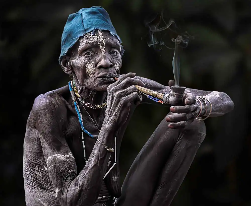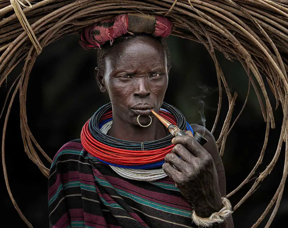 One common theme that seems to be present amongst these photographs is ‘pride’. These women come across as very proud and almost soldier like in appearance. As I viewed each photograph from this collection, I noticed how adorned and different each pipe was. I’d like to know if these women physically make their pipes, choosing to customize each pipe themselves?