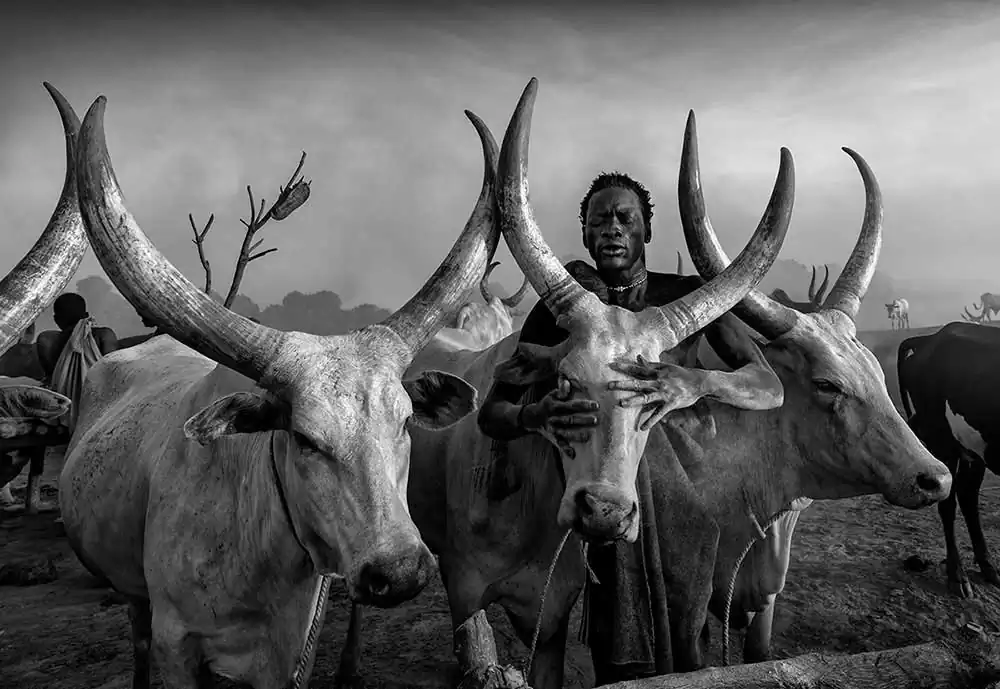 I travelled through different countries of the African continent. Touring Ethiopia, a few years ago, I find myself restricting myself from approaching the border with Sudan because of the danger of that country at war. Years passed, and I had the opportunity to meet the anthropologist (today friend) Joan Riera, passionate about African cultures, which remain relatively intact. It was then that the project of touring South Sudan began to emerge, after its independence from Sudan in 2011. Our project was to know about the ancient cultures of the people of that area, but we had to make sure that the tribes we could visit would be in peace. To the north of Juba, a large area on the White Nile banks is occupied by the Mundari (Nile nomadic shepherds).