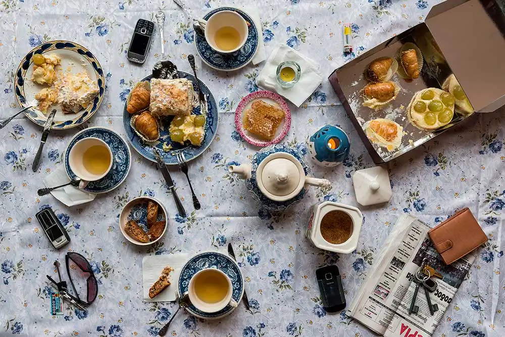 ‘Conversations’, explores your experience of being raised as a first-generation son of Greek Immigrants with traditional European values, in America. The images are inspired by the bonding and togetherness fostered by your mother’s insistence on home-made food, shared with family at a ritually dressed table whatever the occasion. Can you introduce us to this work?