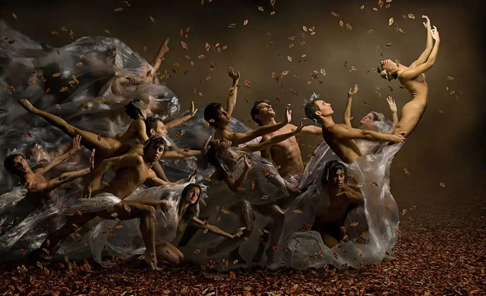 A group of dancers asked us if we could do some images for a show about the four seasons, so we had the idea to pick up lots of autumn leaves to our studio and they start posing naked on the leaves and we loved the result.