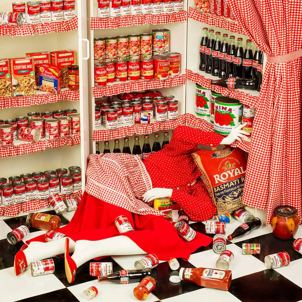 Yes, for the “Canned” picture, I wanted to do a commentary on abundance using a pantry or cupboard. So when I started to consider food, it was immediately obvious that it had to be Campbell’s soup, which determined the red and white theme to the picture. As for Kusama, I have loved her work for years. It is not necessarily a direct relationship, but I am attracted to anything that is colorful and uses a lot of pattern to confuse the space in the image.